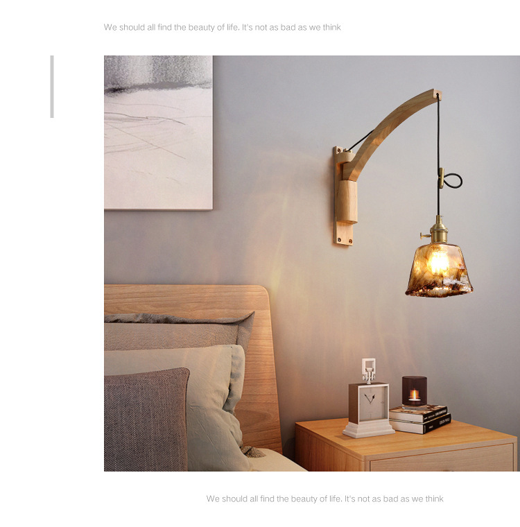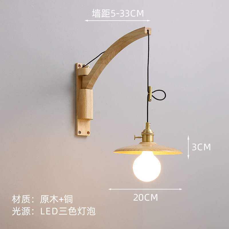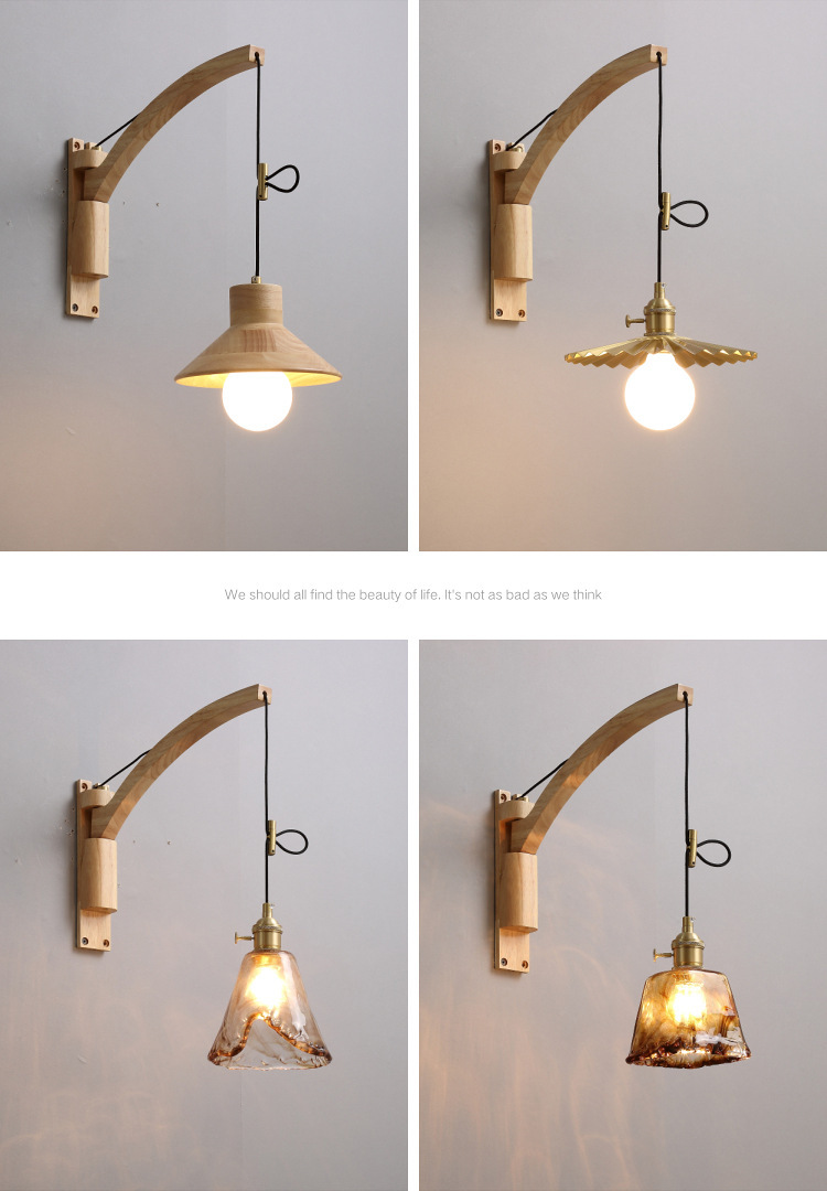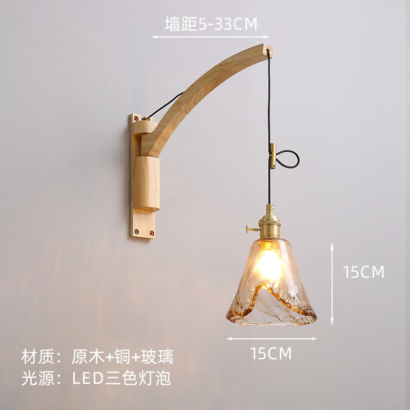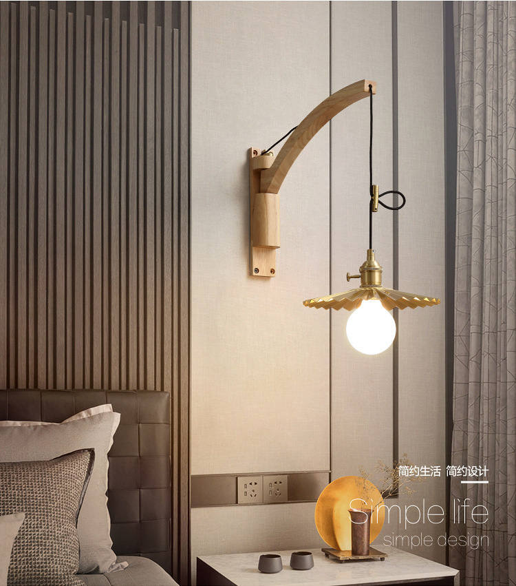 일본식 통나무 벽 램프 간단한 개폐식 접이식 거실 침실 머리맡 회전 로커 레스토랑 세라믹 유리 벽 램프스토어 가기