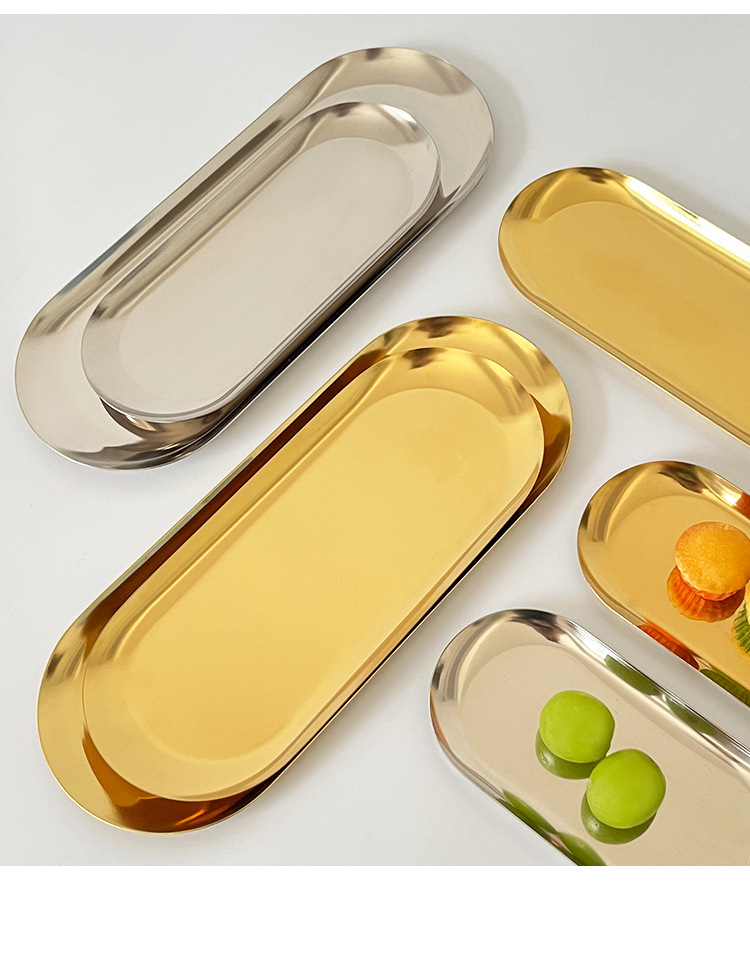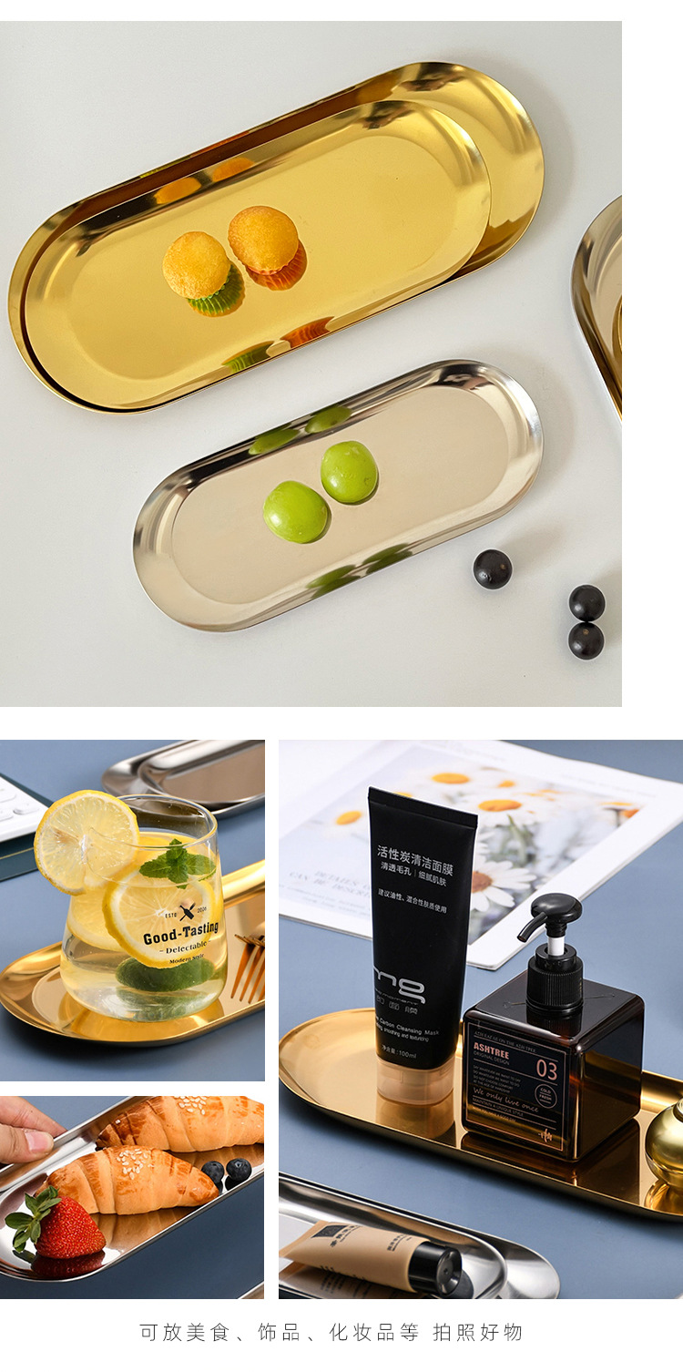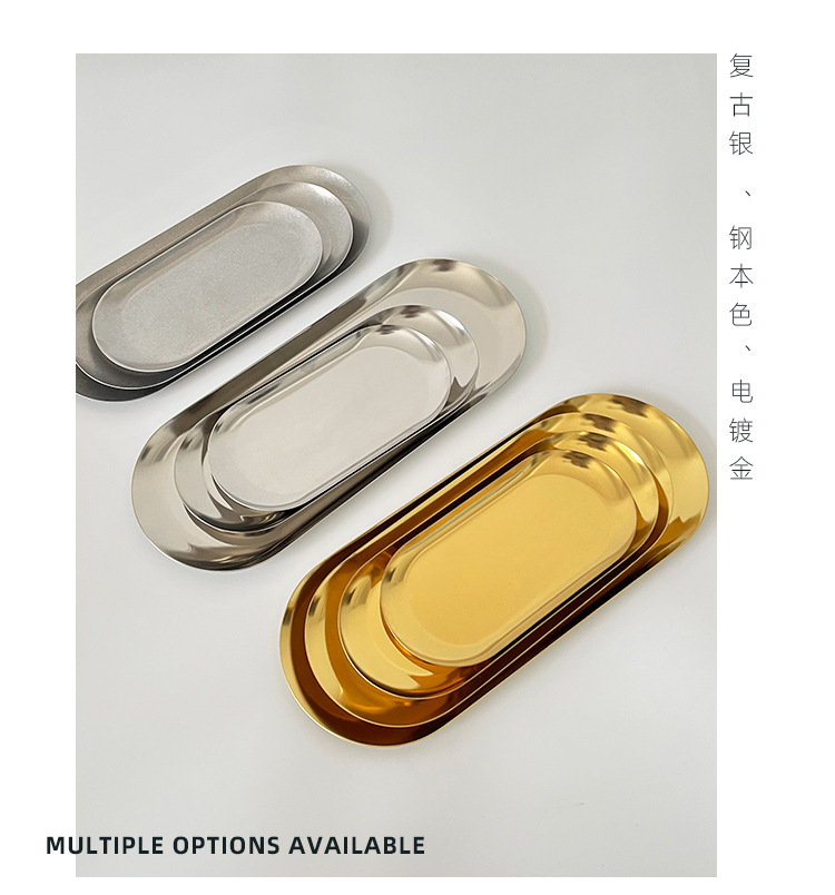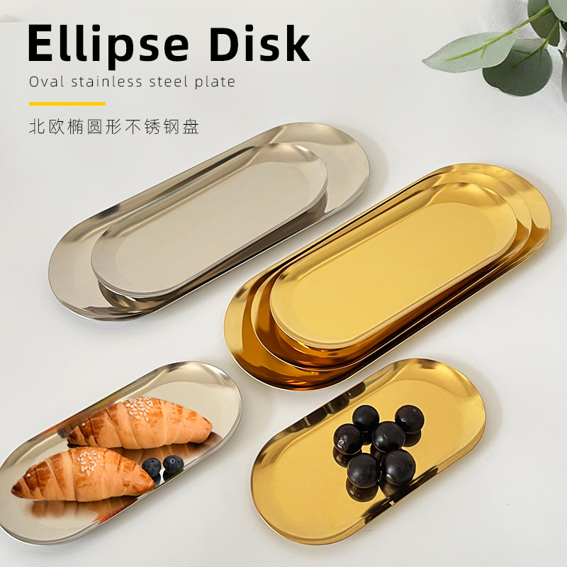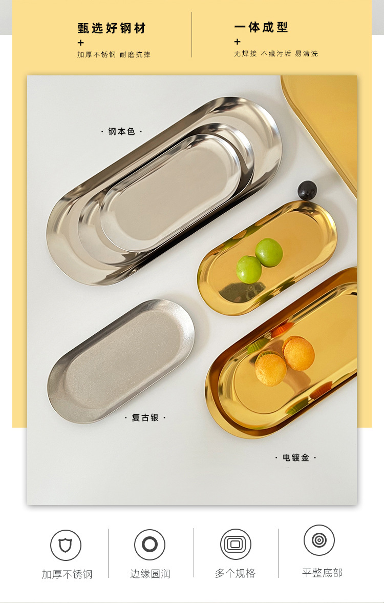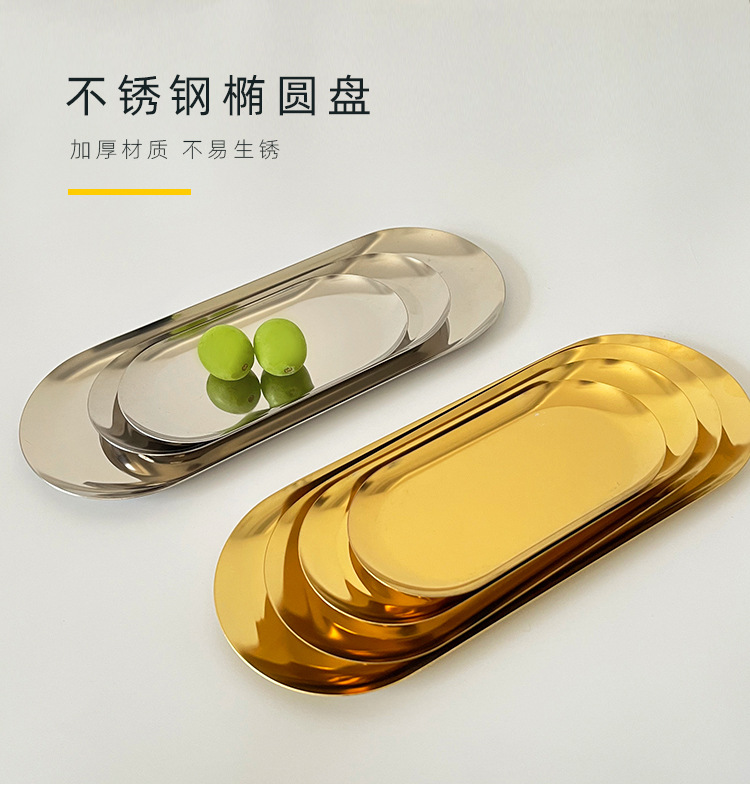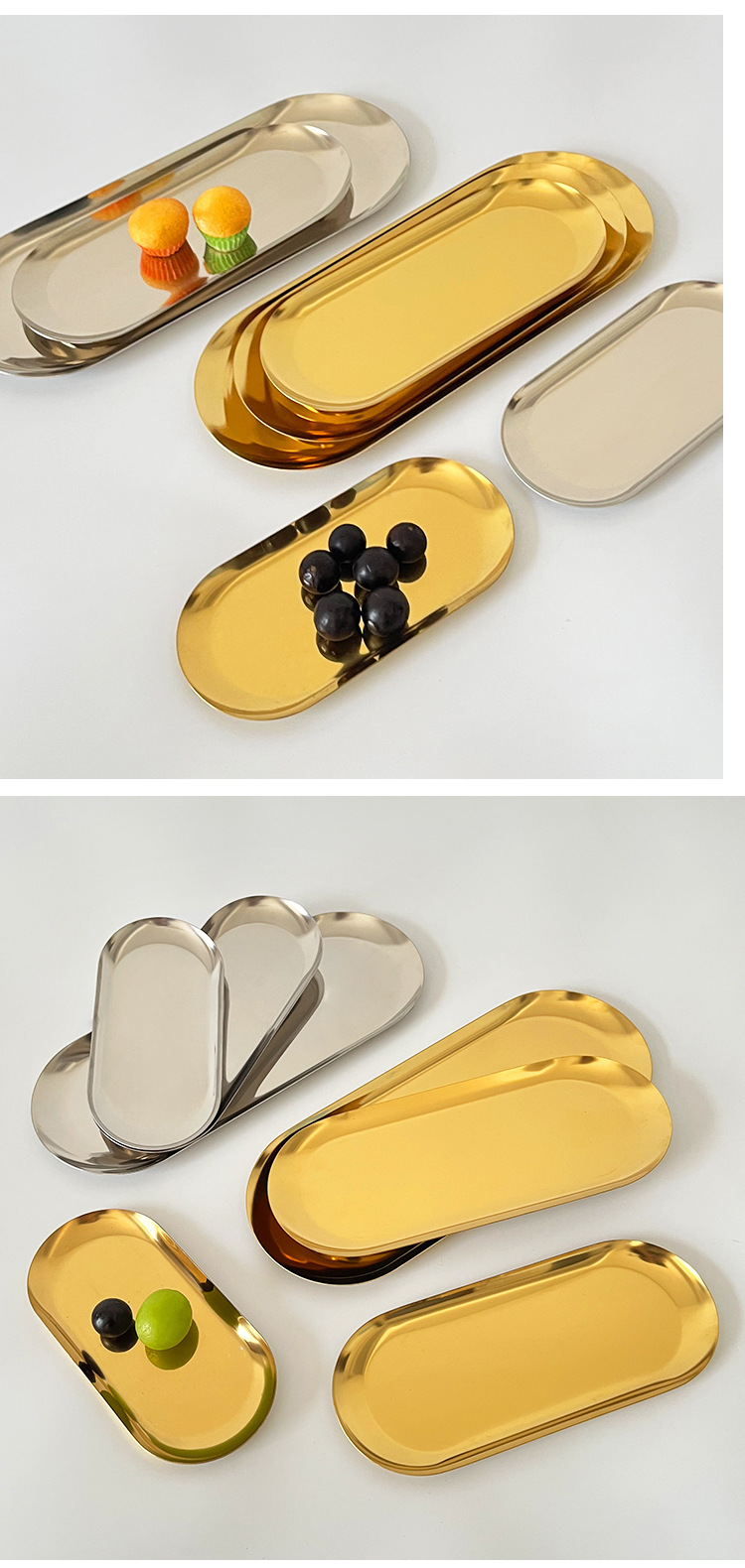복고풍 스타일 스테인레스 스틸 타원형 접시 일본 보석 트레이 크리 에이 티브 레스토랑 디저트 과자 접시 황금 수건스토어 가기