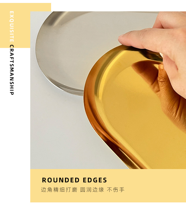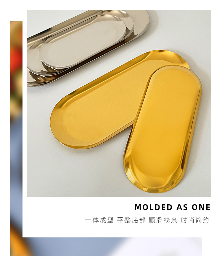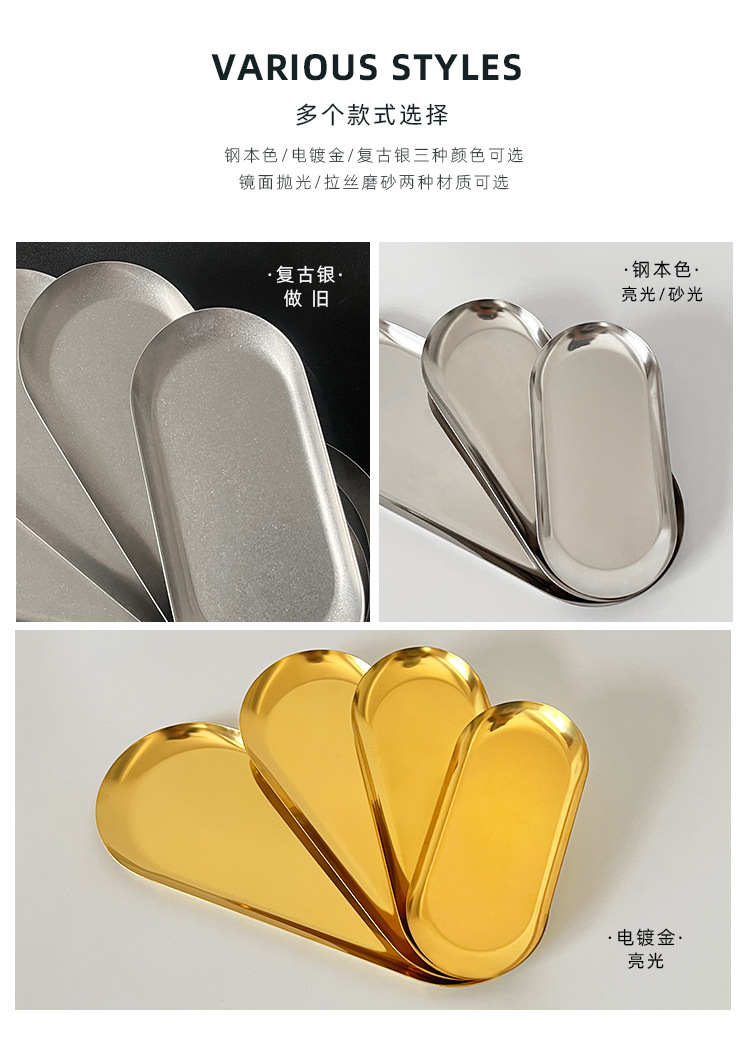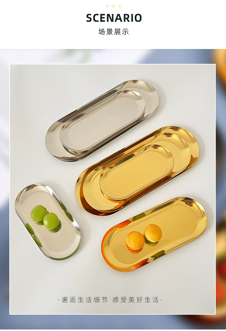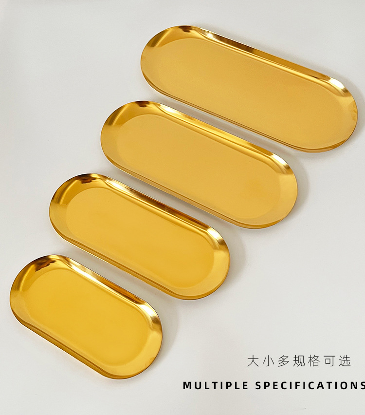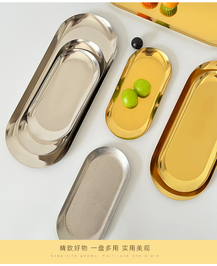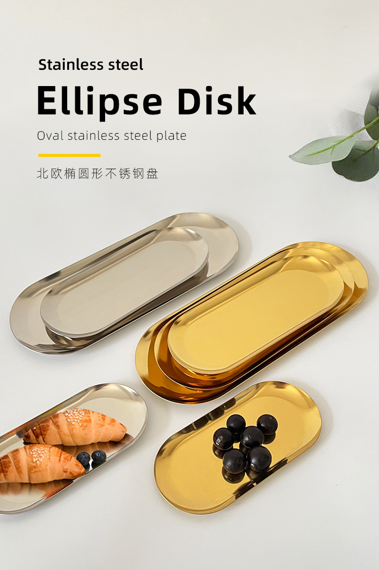 복고풍 스타일 스테인레스 스틸 타원형 접시 일본 보석 트레이 크리 에이 티브 레스토랑 디저트 과자 접시 황금 수건스토어 가기