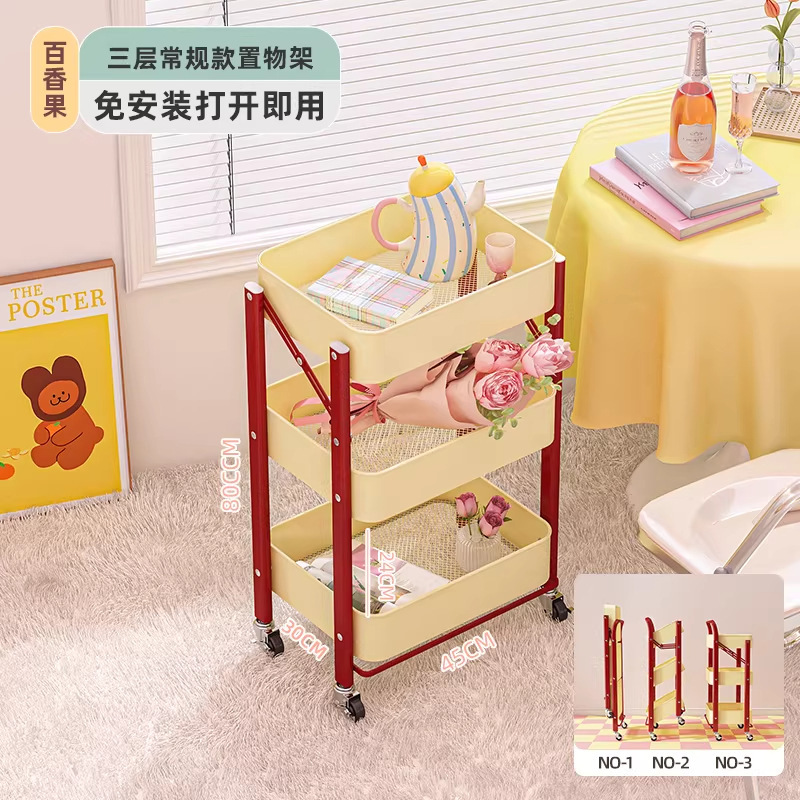 트롤리 스토리지 랙 모바일 스낵 스토리지 랙 주방 접이식 계층화 된 선반 바닥에 서있는 베이비 제품 스토리지 랙스토어 가기