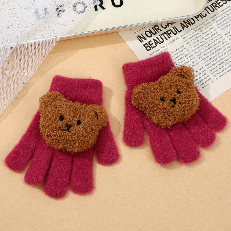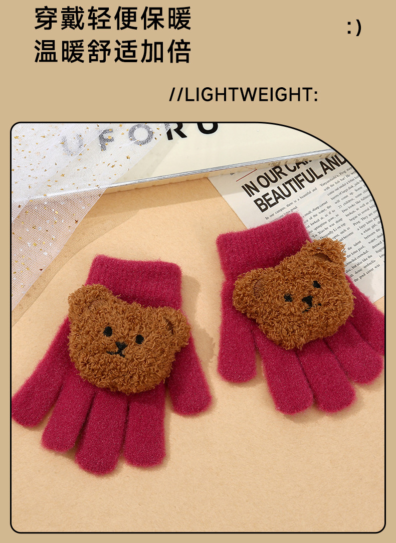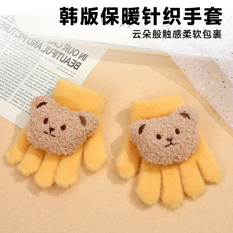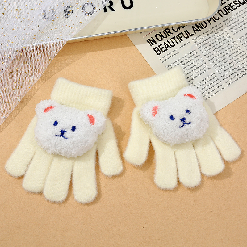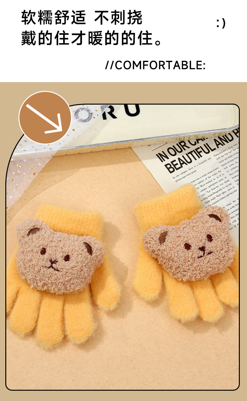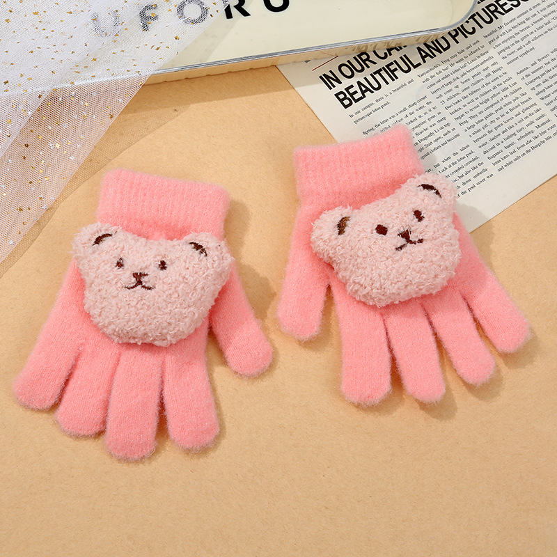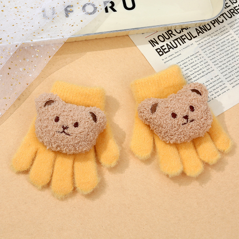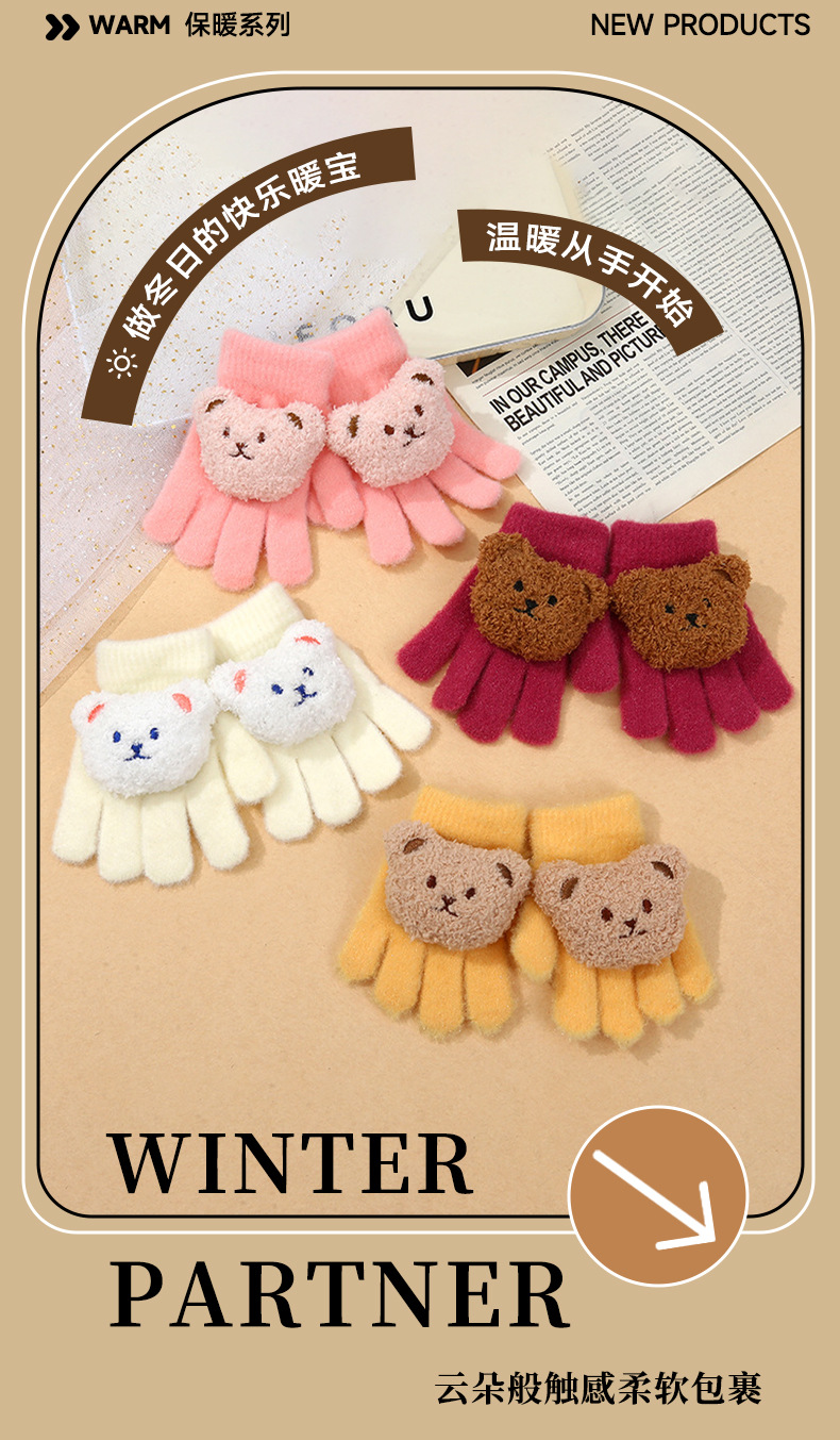 아기 장갑 겨울 따뜻한 어린이 귀여운 곰 플러시 다섯 손가락 장갑 겨울 손 보호 소년과 소녀를위한 추위로부터 보호