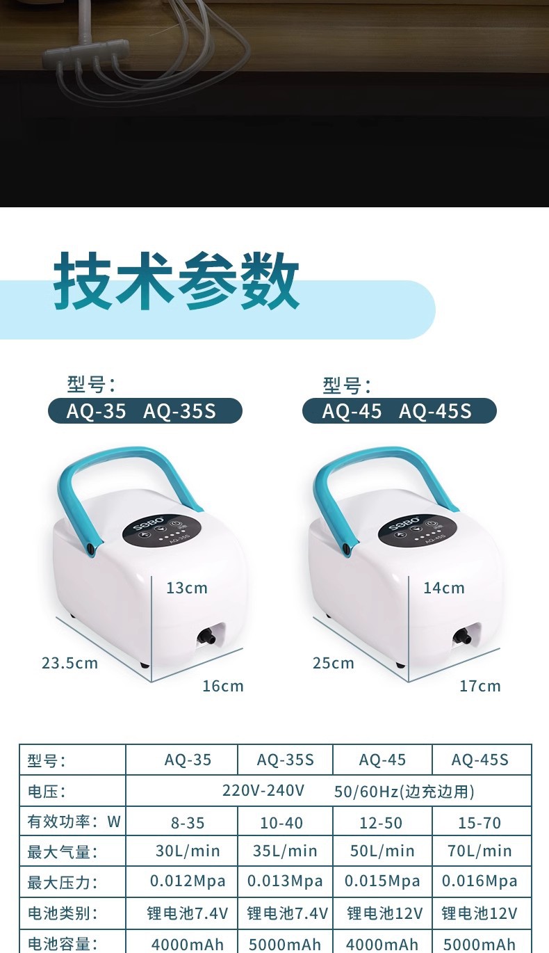 • Songbao AQ-35 AC 및 DC 산소 펌프 8W-35W