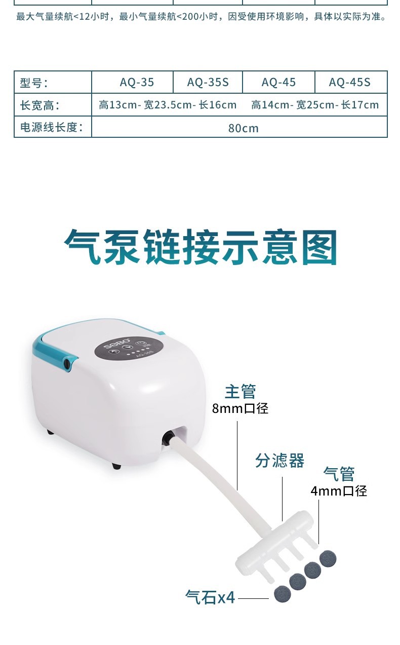 • Songbao AQ-35 AC 및 DC 산소 펌프 8W-35W+ 액세서리