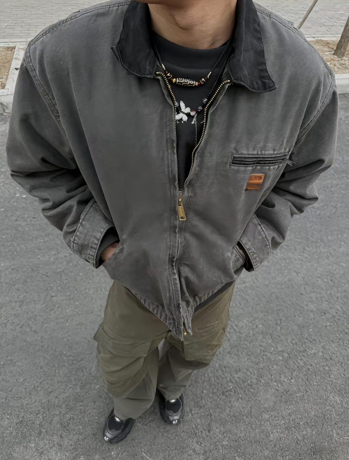 J97! Carhartt 빈티지 재킷 워시 헤비듀티 디스트레스드 재킷 남성 가을, 겨울 라펠 탑 통기성