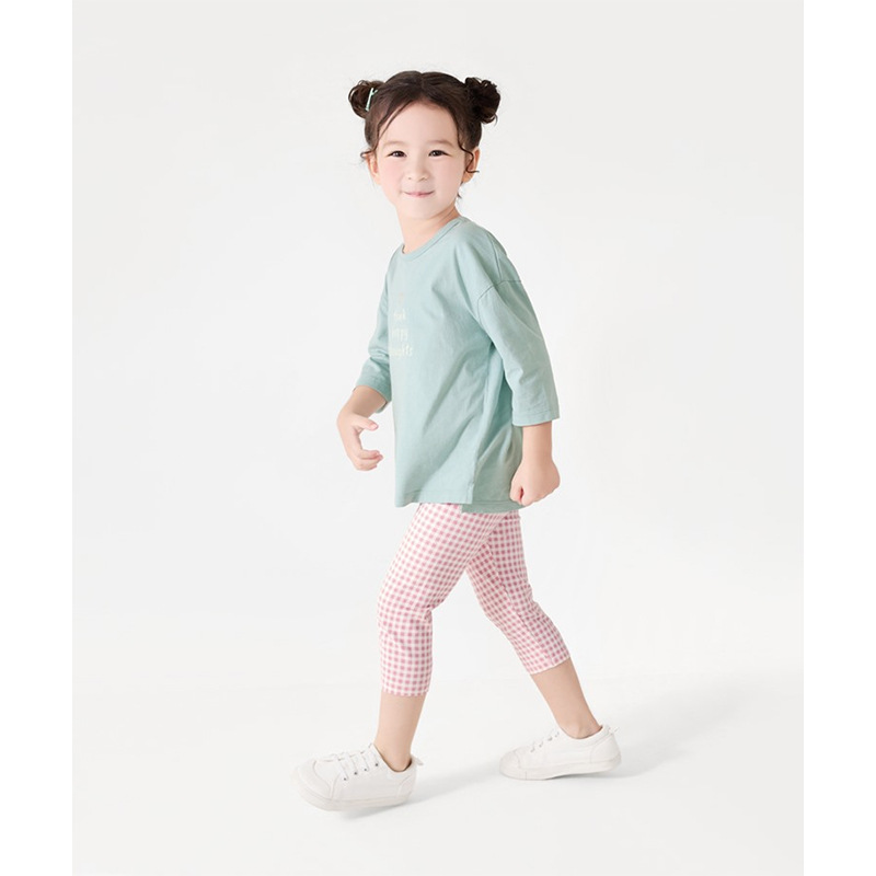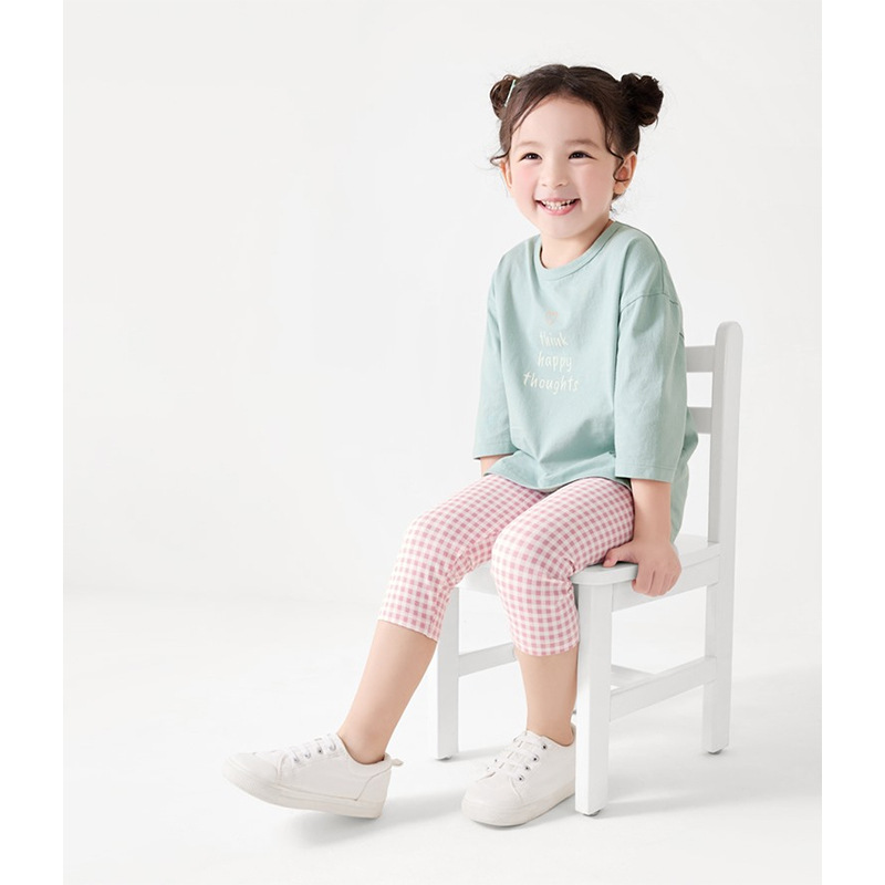 여름 여아용 7부 팬츠, 여아용 체크무늬 레깅스, 부드럽고 신축성 있는 저지 이너팬츠, 일본 아동복스토어 가기