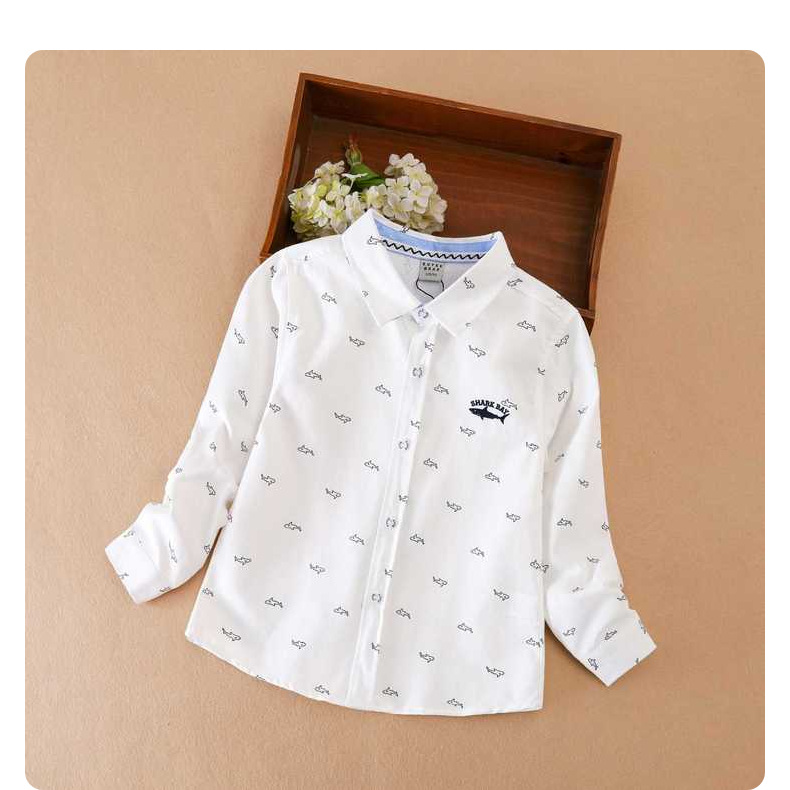 소년 셔츠 2025 봄 여름 심플 캐주얼 대학 스타일 긴팔 셔츠 소년 전체 인쇄 중대형 아동 캐주얼상의스토어 가기