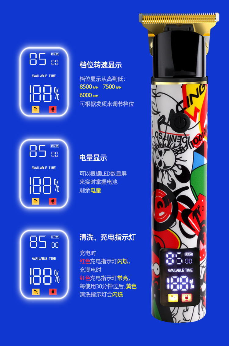 크로스보더 그래피티 이발기 남성용 이발 및 조각용 클리퍼 면도기 전기 이발기 공장 도매 면도기스토어 가기