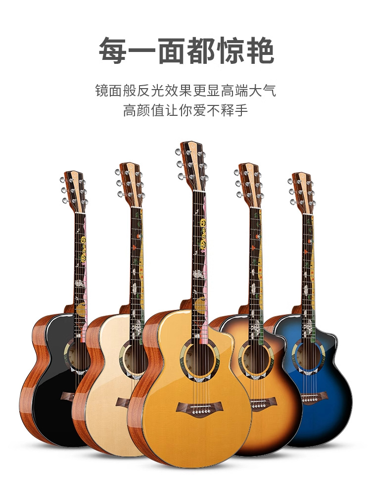 도매/드롭 배송 싱글 보드 클래식 포크 기타 초보자 40/ 41inch 소년과 소녀 핑거 보드 패턴 나무 기타스토어 가기