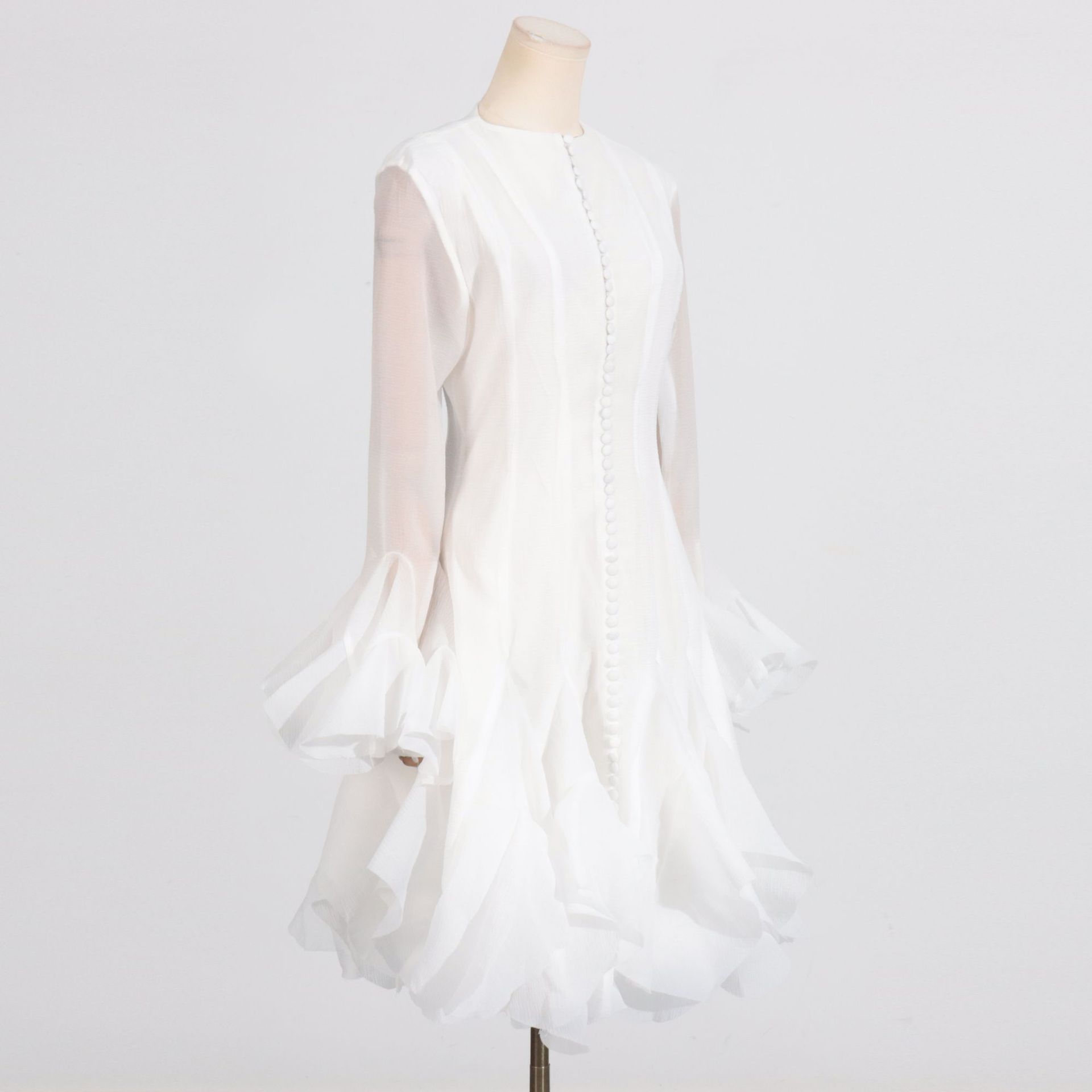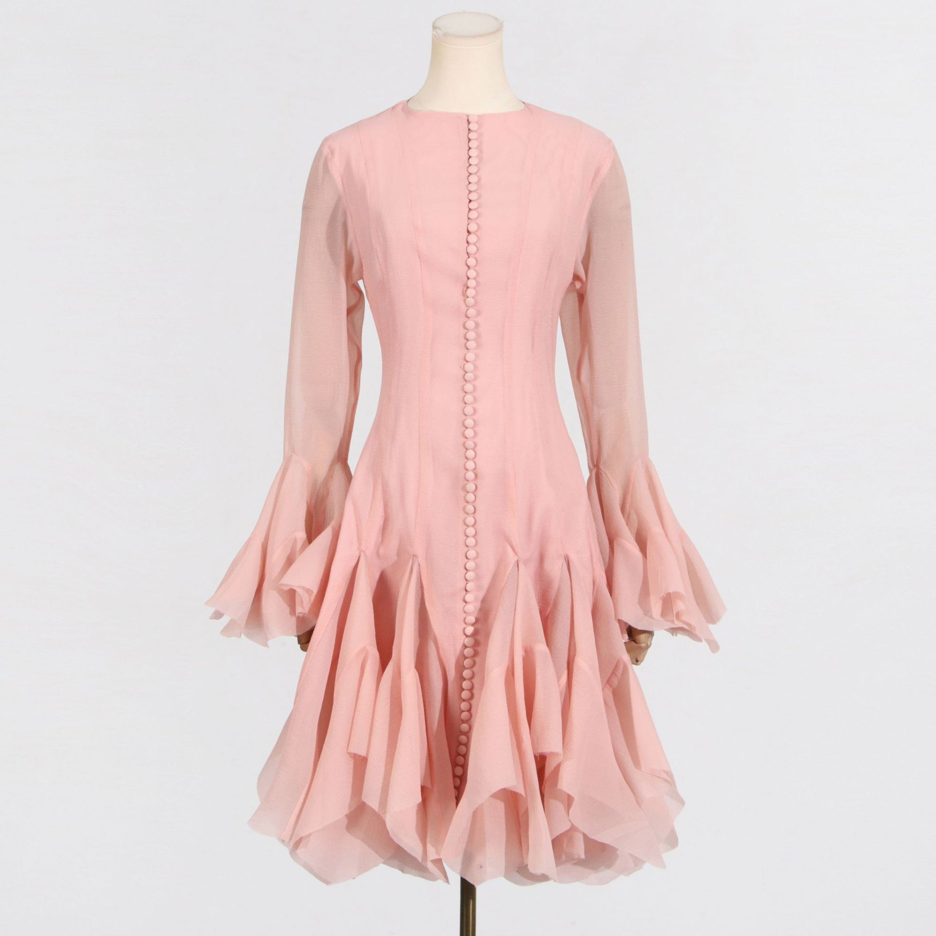 국경 간 핫 세일 러플 원피스 여성 여름 2025 새로운 패션 하이 칼라 긴팔 하이 엔드 웨이스트 미드 길이 원피스스토어 가기