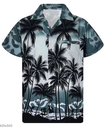 2025년 크로스보더 여름 남성 캐주얼 프린트 반소매 셔츠