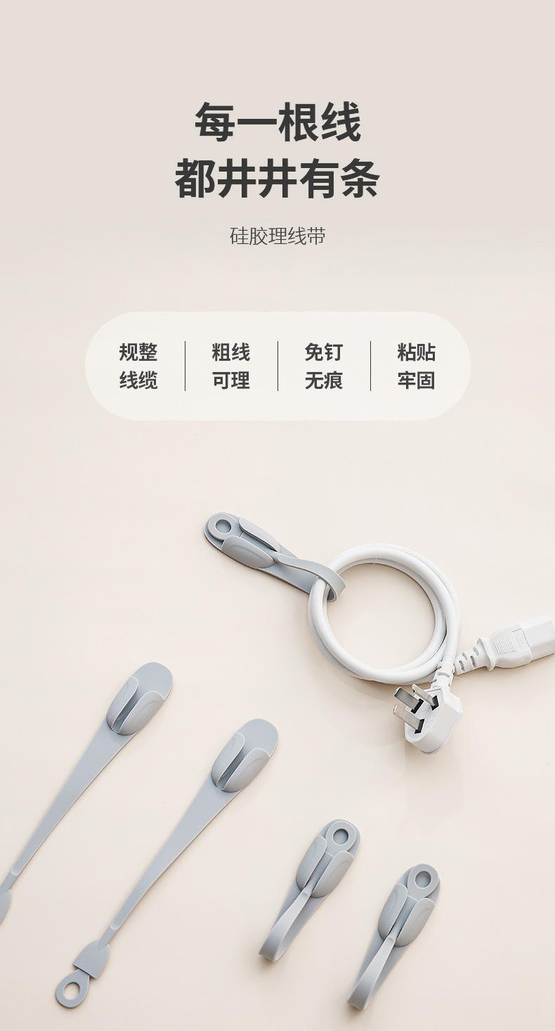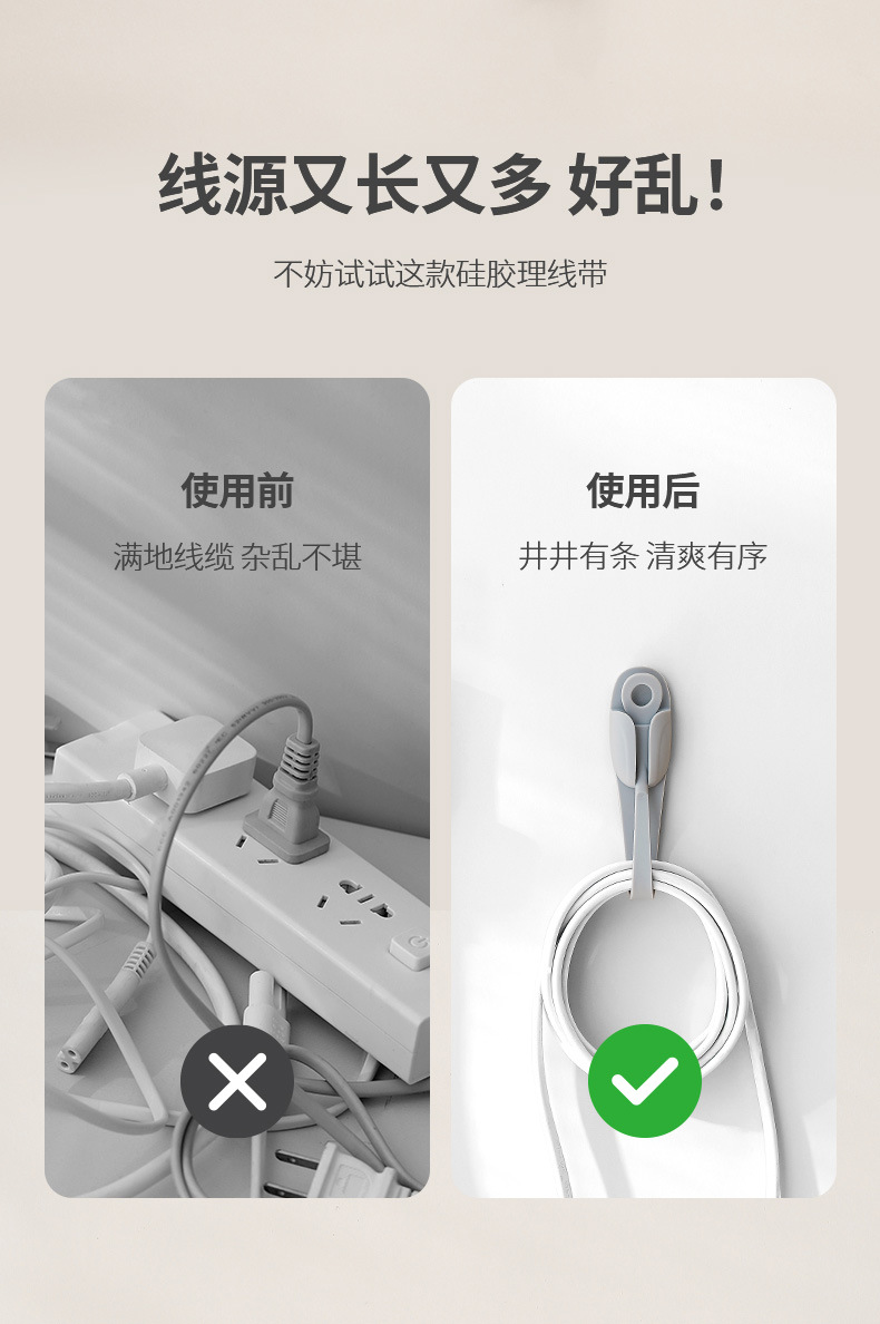 FaSoLa 가정용 다기능 접착제 휴대 전화 코드 전원 코드 허브 고정 버클 감기 테이프 실리콘 케이블 타이