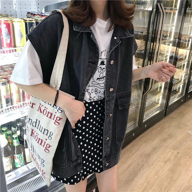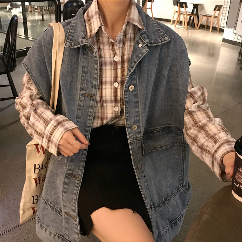 가을 학생 데님 조끼 여성 한국 스타일 슬림 다목적 패션 루즈 하라주쿠 캐주얼 민소매 조끼 트렌디스토어 가기