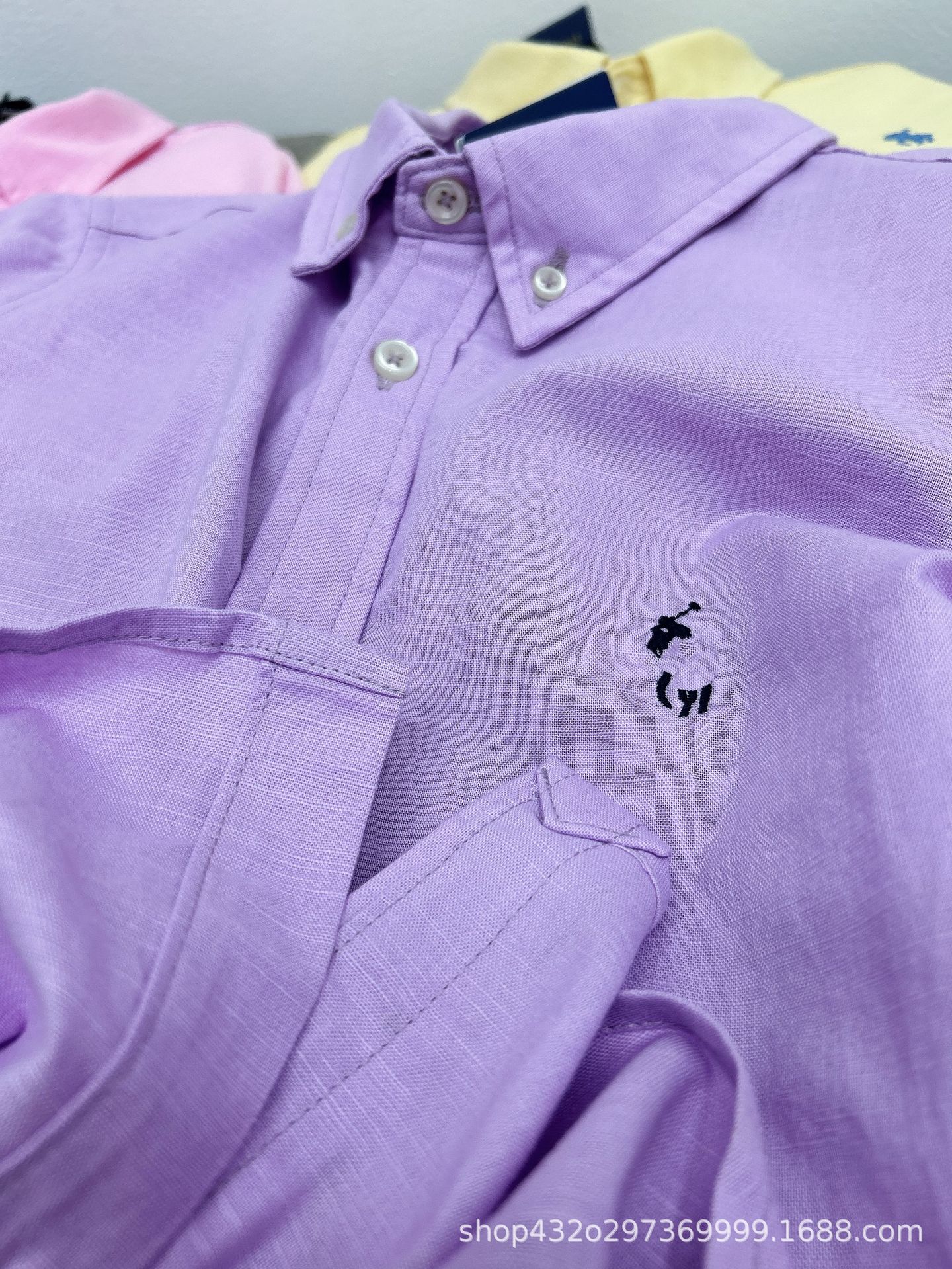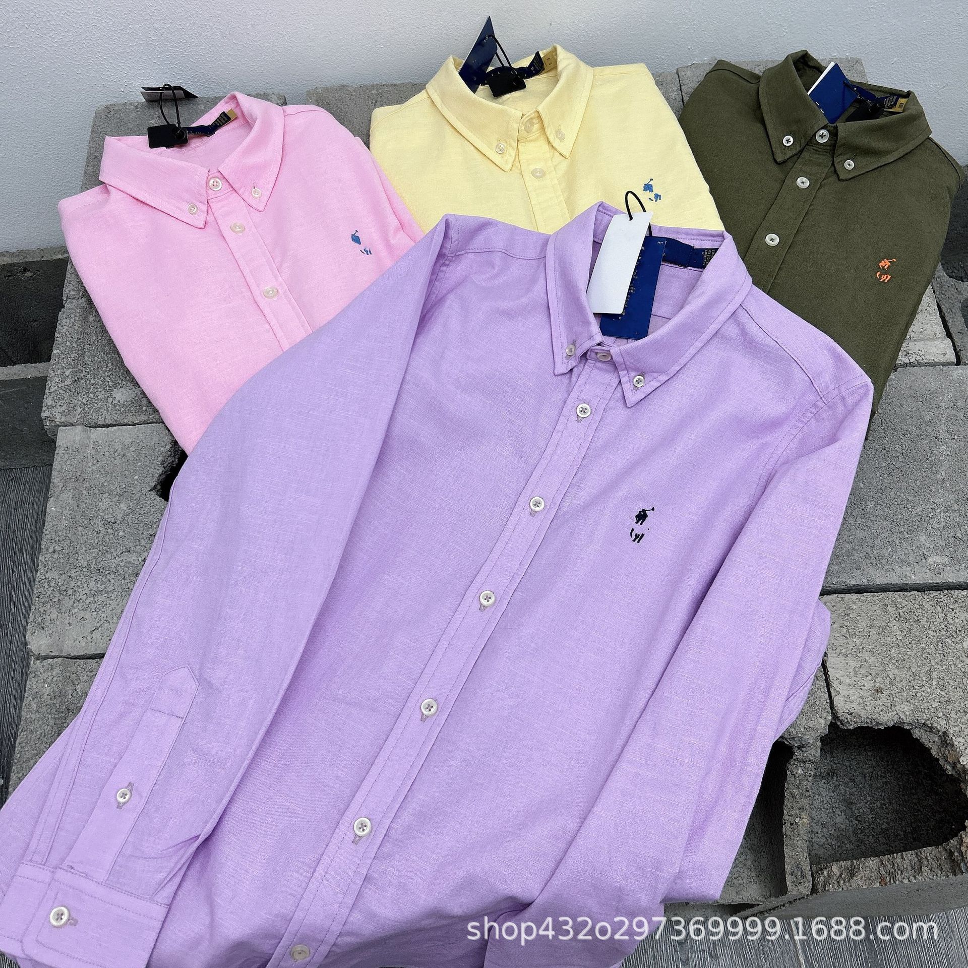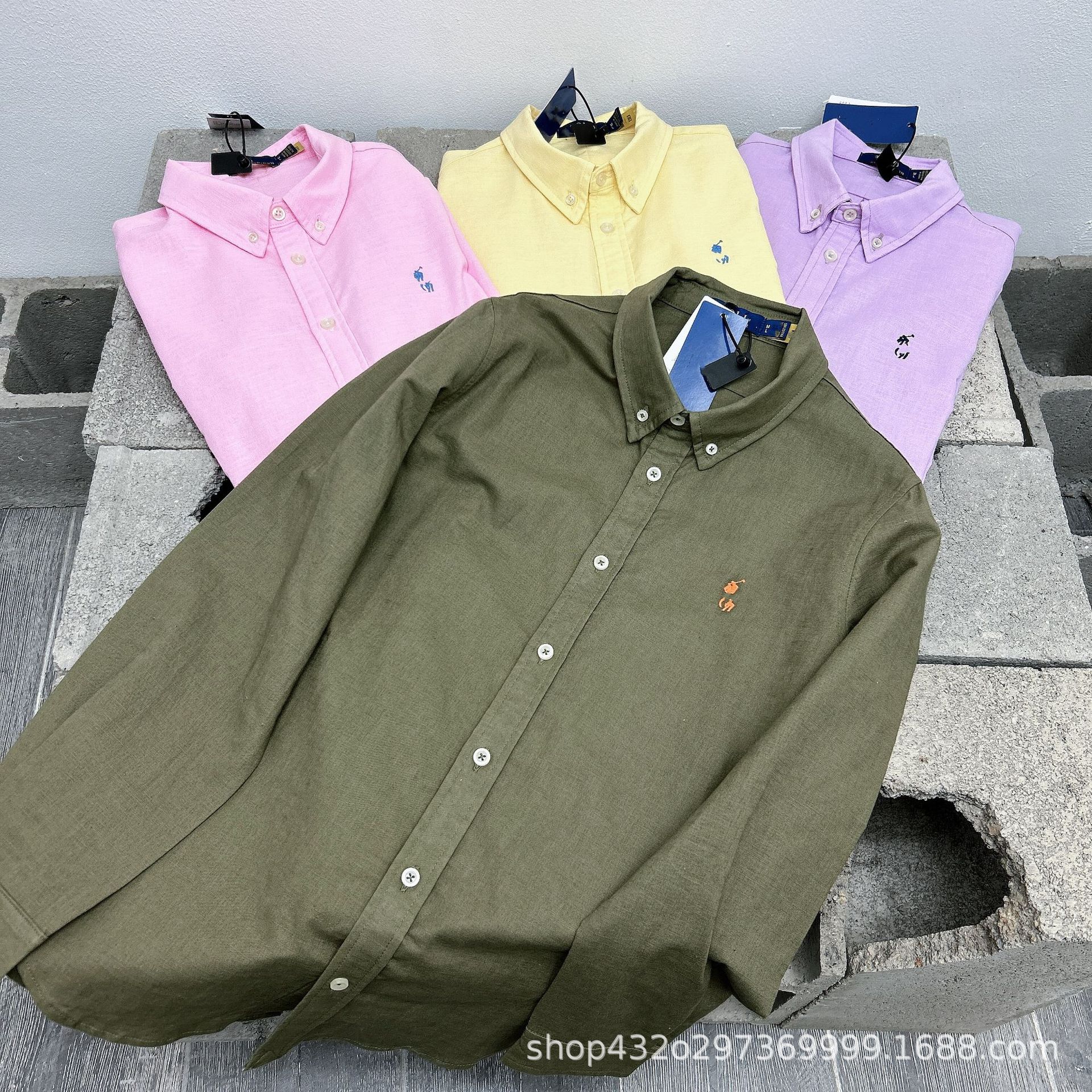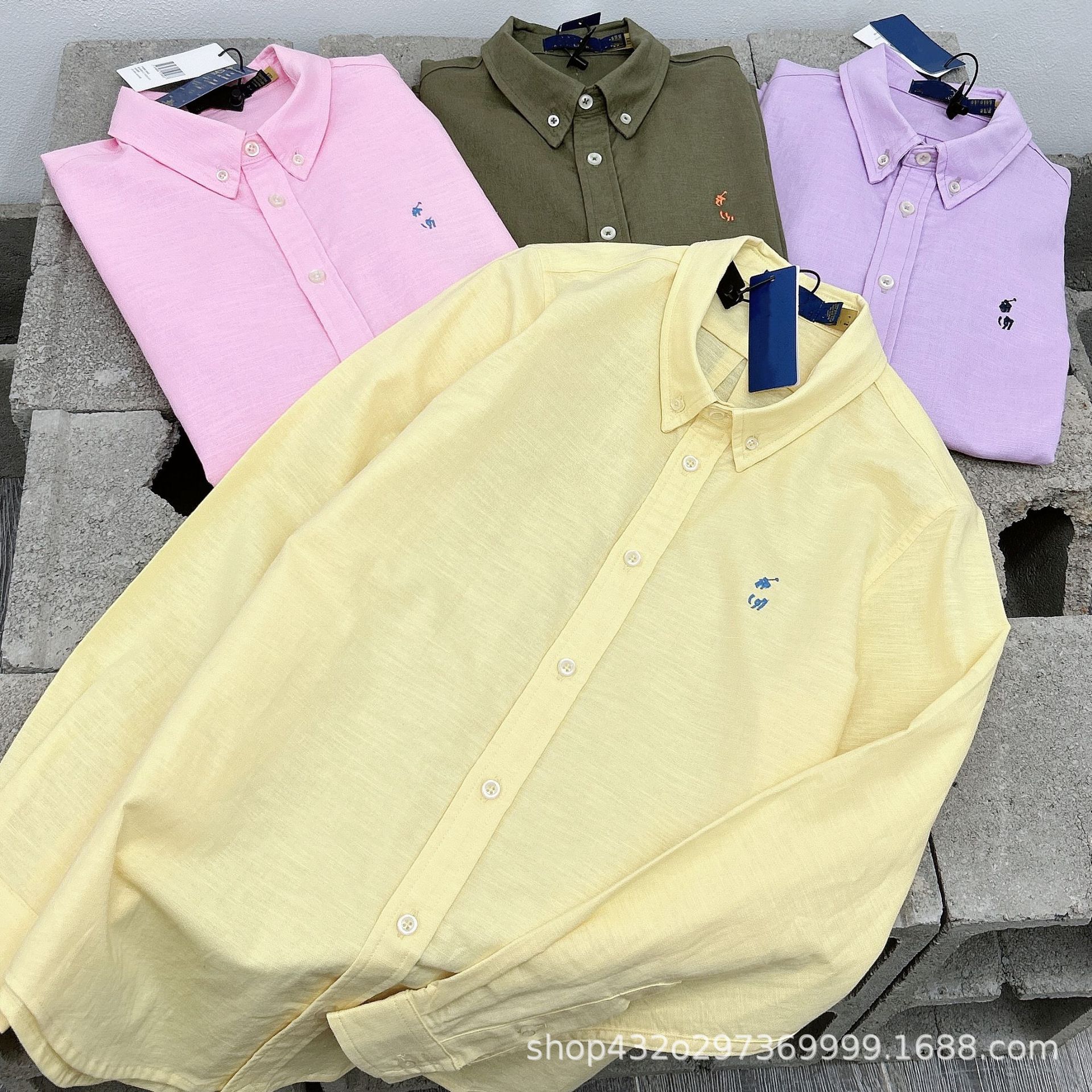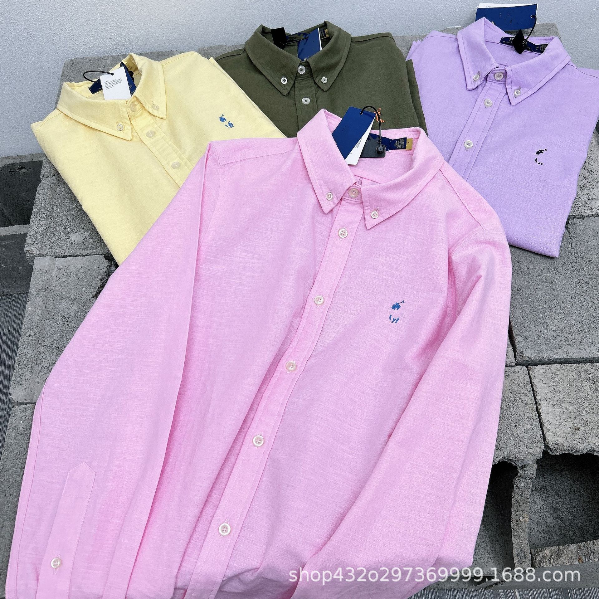 RL 재고 하이 버전 랄프 여성용 멀티 컬러 느슨한 리넨 셔츠 코트 포니 자수 랩 롱 슬리브스토어 가기