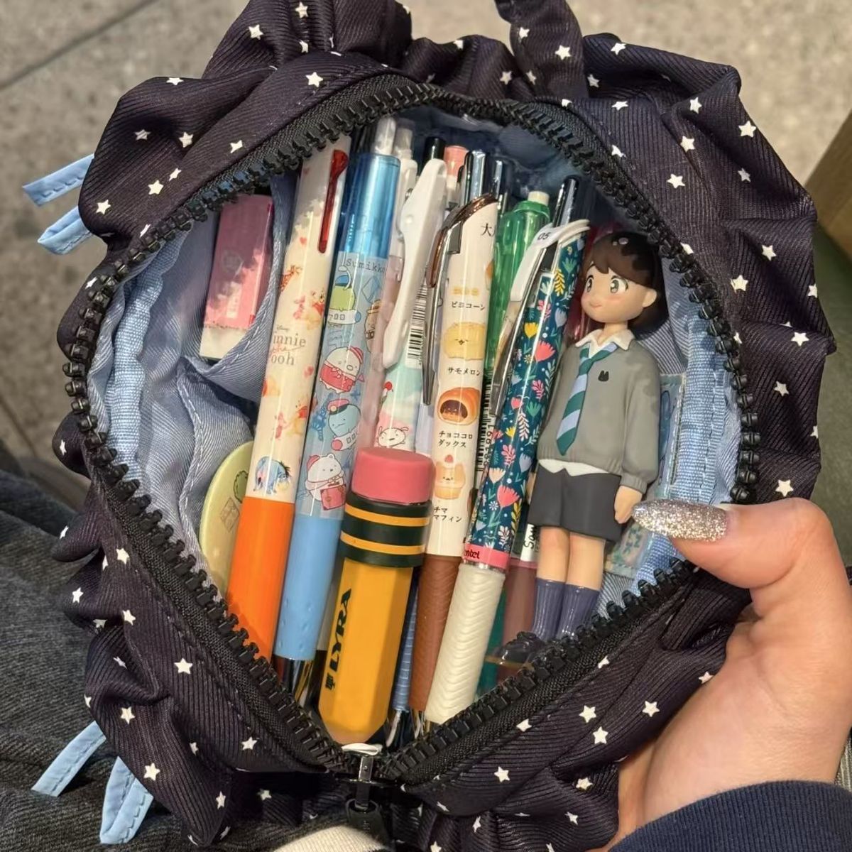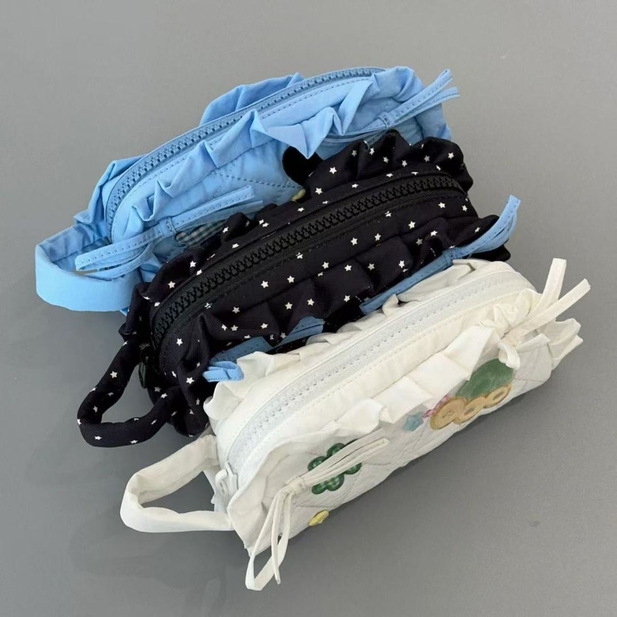 새로운 스타일 레이스 자수 연필 가방 Ins 스타일 귀여운 활 높은 색상 가치 학생 대용량 저장 가방 문구 가방