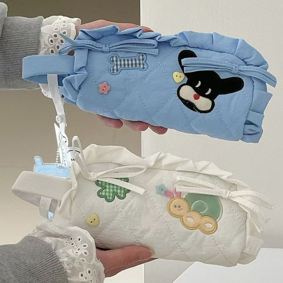 새로운 스타일 레이스 자수 연필 가방 Ins 스타일 귀여운 활 높은 색상 가치 학생 대용량 저장 가방 문구 가방스토어 가기