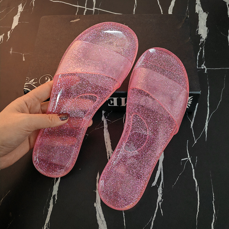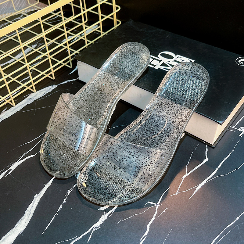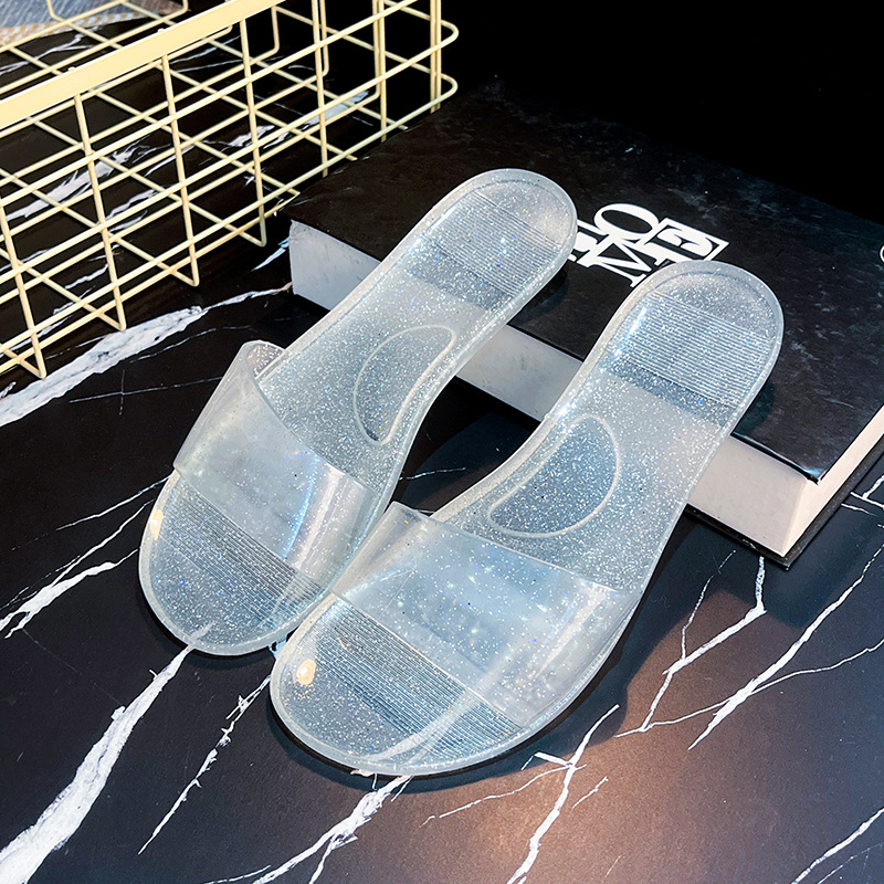 크리스탈 슬리퍼 여성용 플라스틱 투명 접착제 냉동 저발 한국 스타일 실내 홈 여름 하루 원피스 몰딩