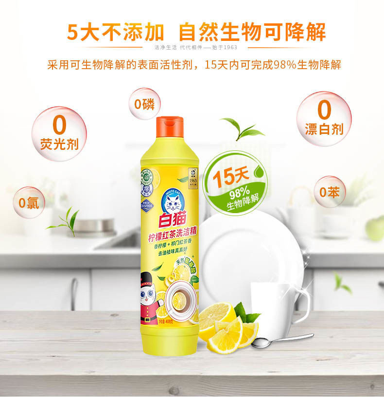 흰 고양이 레몬 홍차 향기로운 주방 세제 작은 병 다양한 사양 선택 특별 패키지 가정용 기름 제거 및 얼룩 제거 손을 다치게하지 않습니다스토어 가기