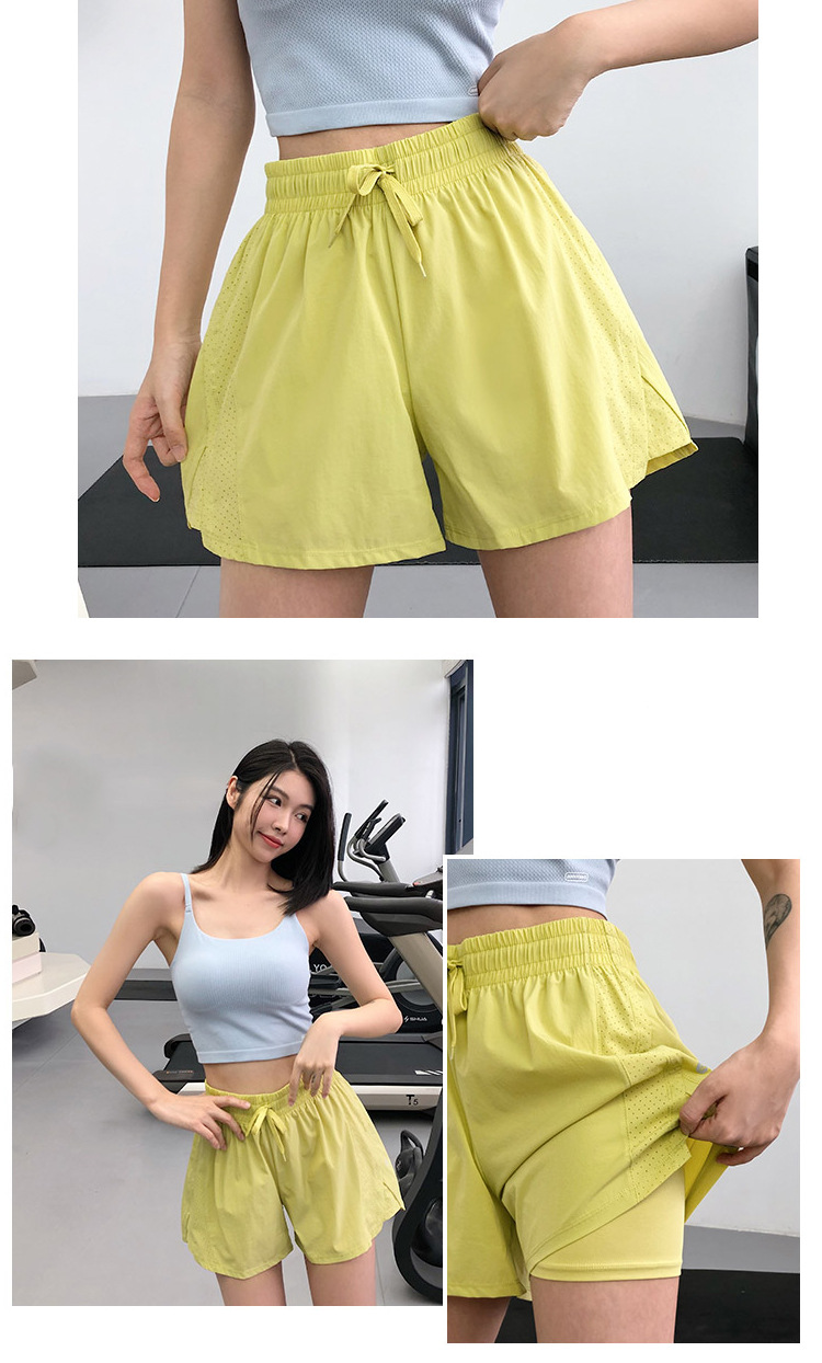 새로운 여름 스포츠 반바지 여성의 빠른 건조 가짜 투피스 안티 워킹 3 점 달리기 훈련 피트니스 요가 바지 느슨한