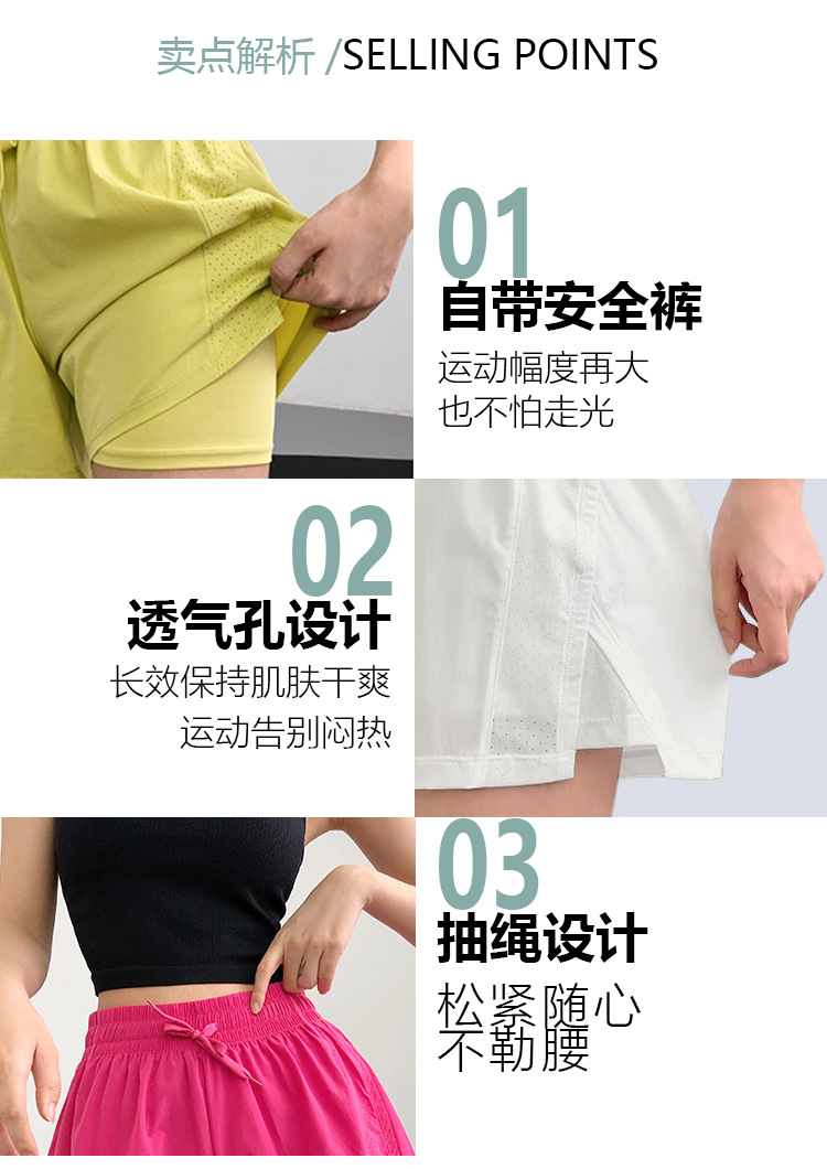 새로운 여름 스포츠 반바지 여성의 빠른 건조 가짜 투피스 안티 워킹 3 점 달리기 훈련 피트니스 요가 바지 느슨한스토어 가기