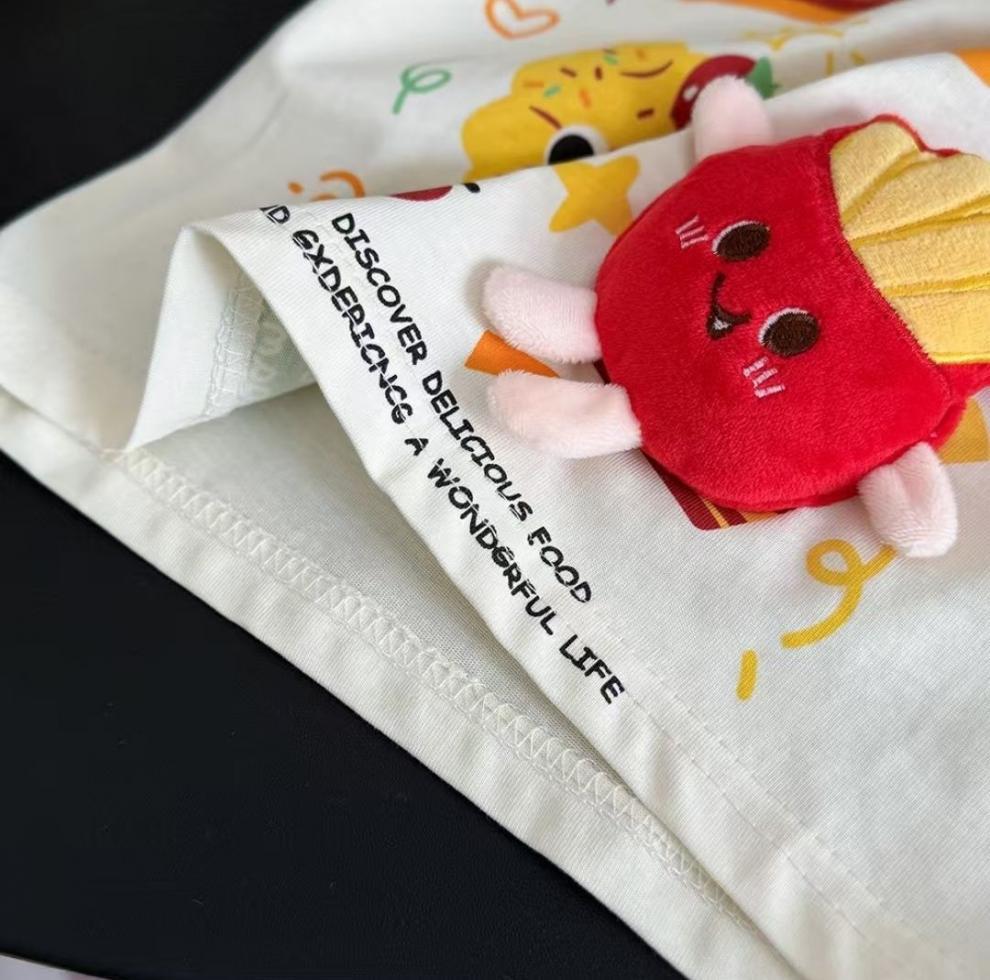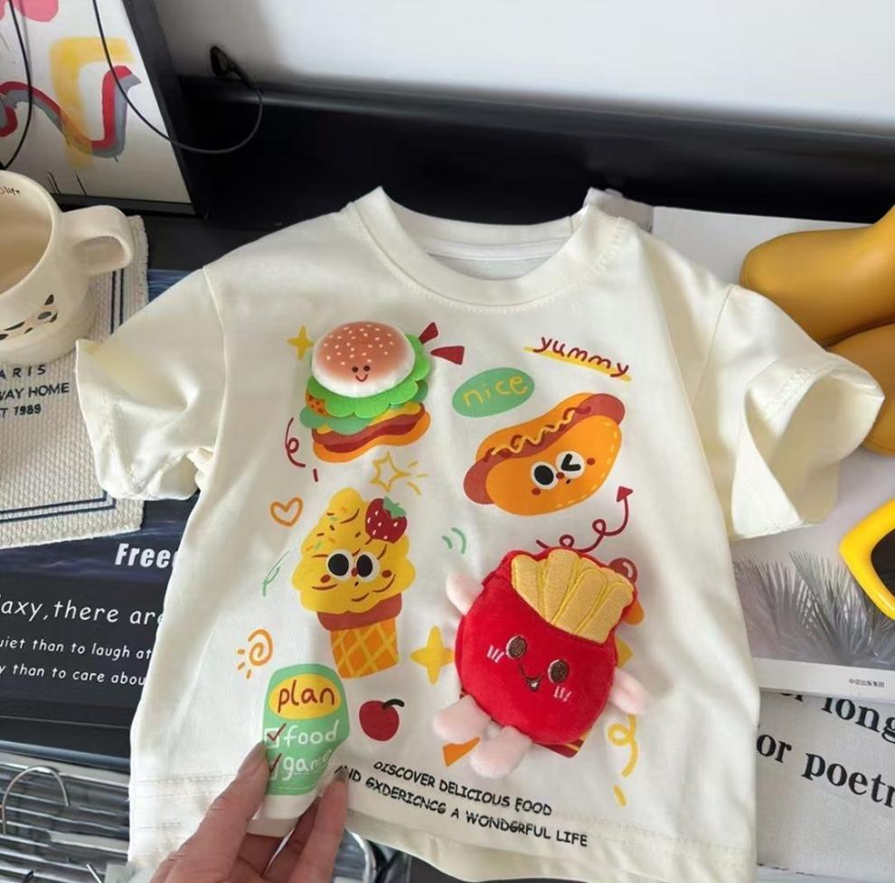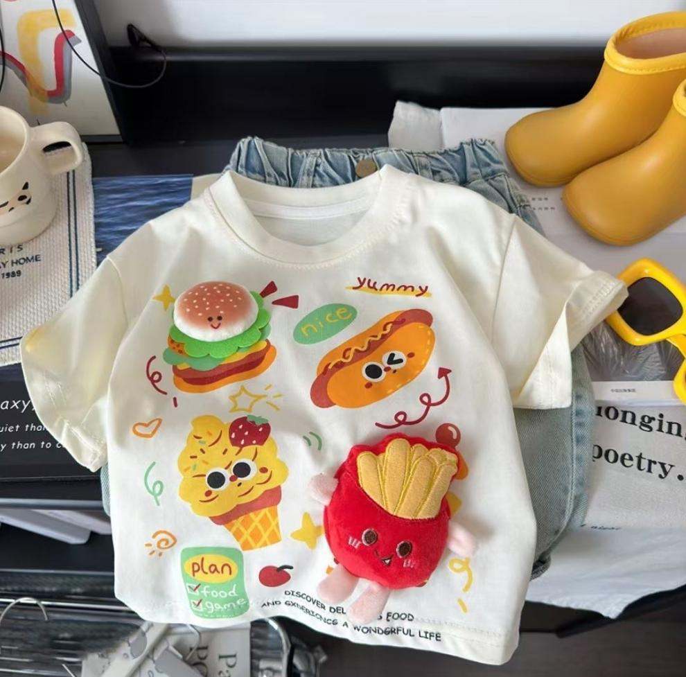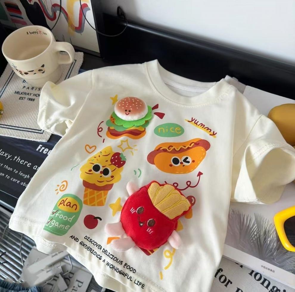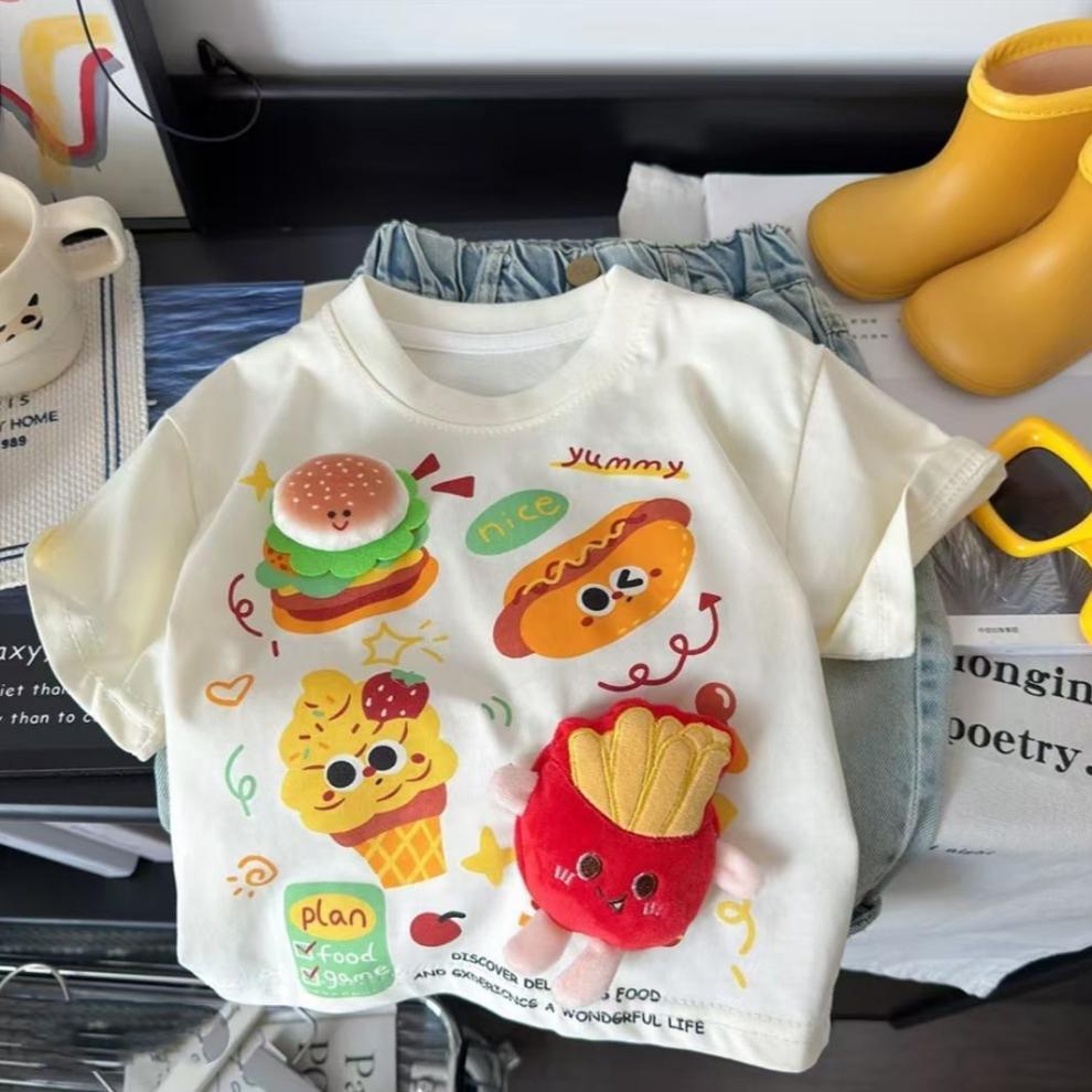 어린이 3 차원 인형 반팔 티셔츠 여름 2025 새로운 느슨한 한국 만화 탑 반팔베이스 셔츠 트렌디스토어 가기