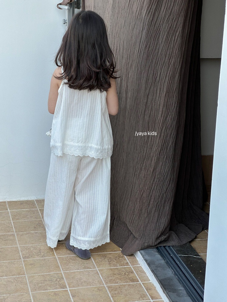 여자 한국 아동복 2025 여름 새로운 어린이 화이트 레이스 슬링 스트레이트 다리 바지 우아한 간단한 투피스 세트스토어 가기