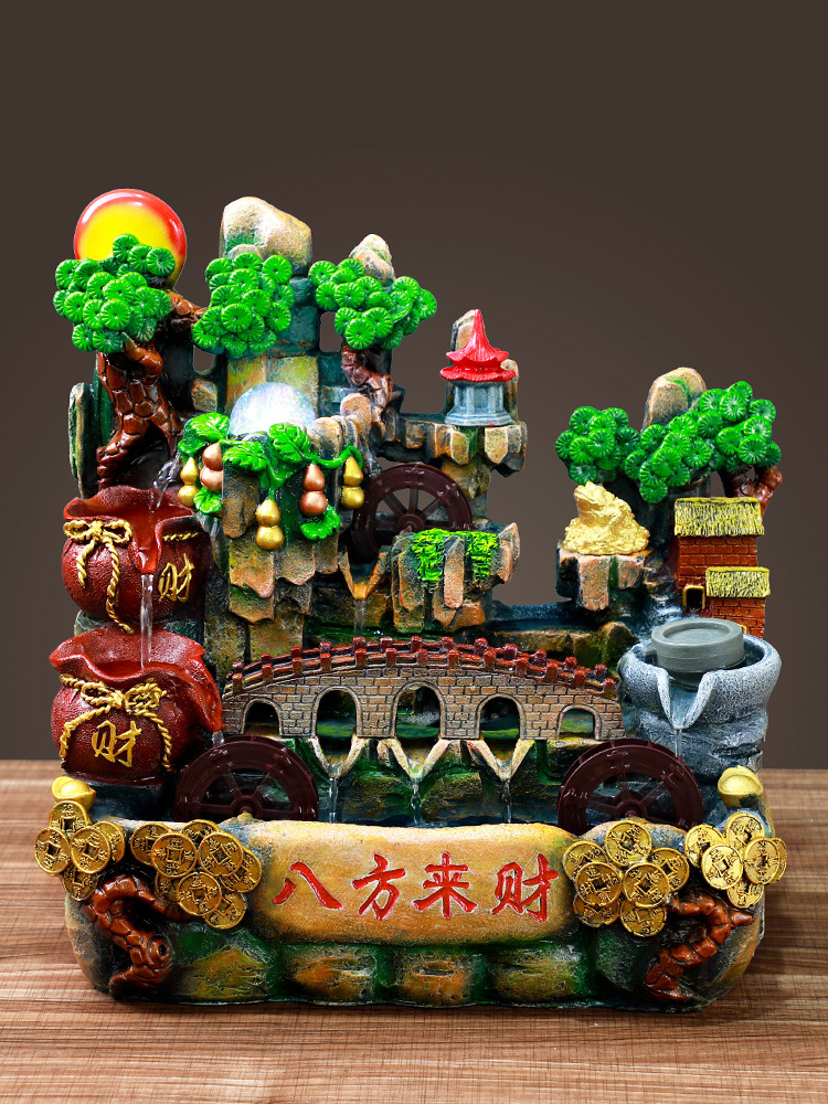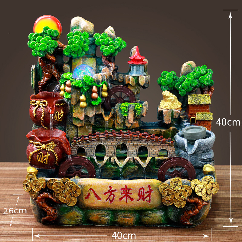 데스크탑 흐르는 바위 수지 장식품 실내 가정 거실 장식 창조적 인 입구 분수 분무 순환 물