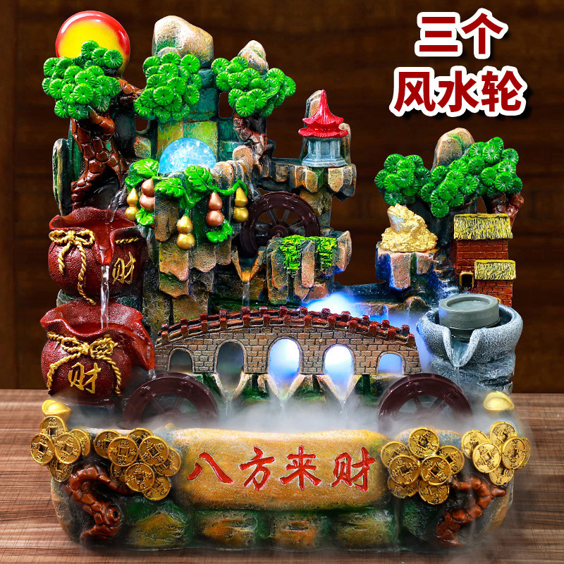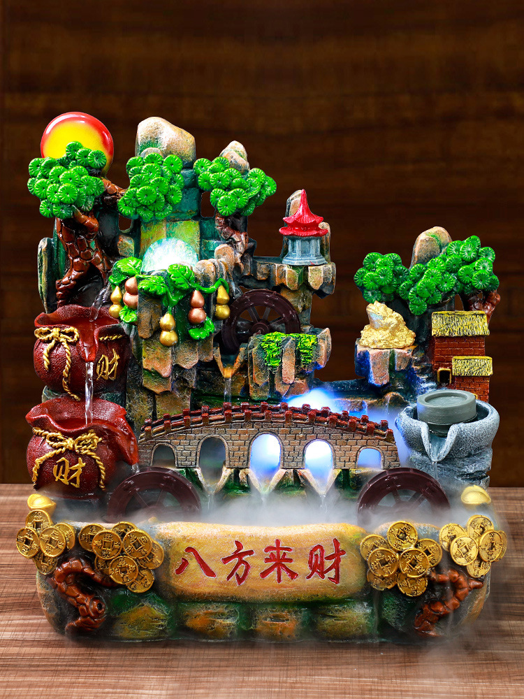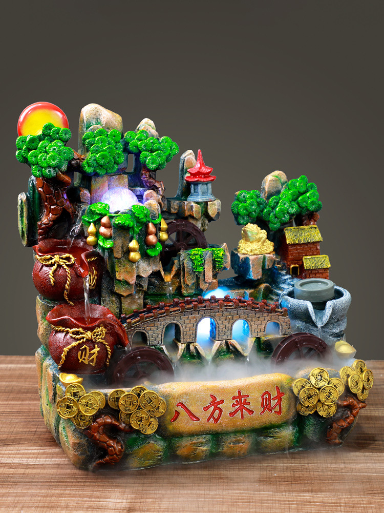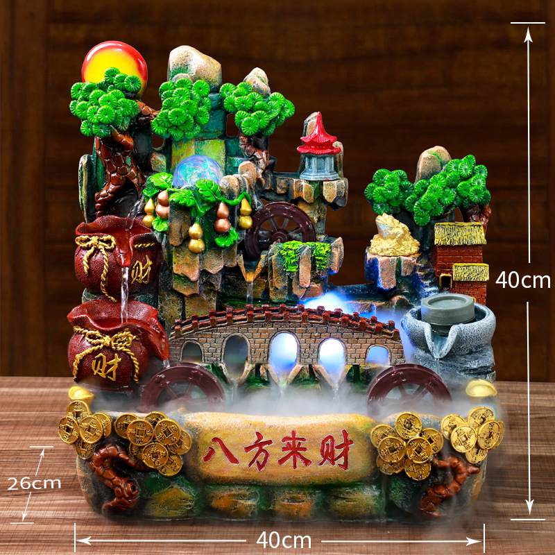 데스크탑 흐르는 바위 수지 장식품 실내 가정 거실 장식 창조적 인 입구 분수 분무 순환 물스토어 가기