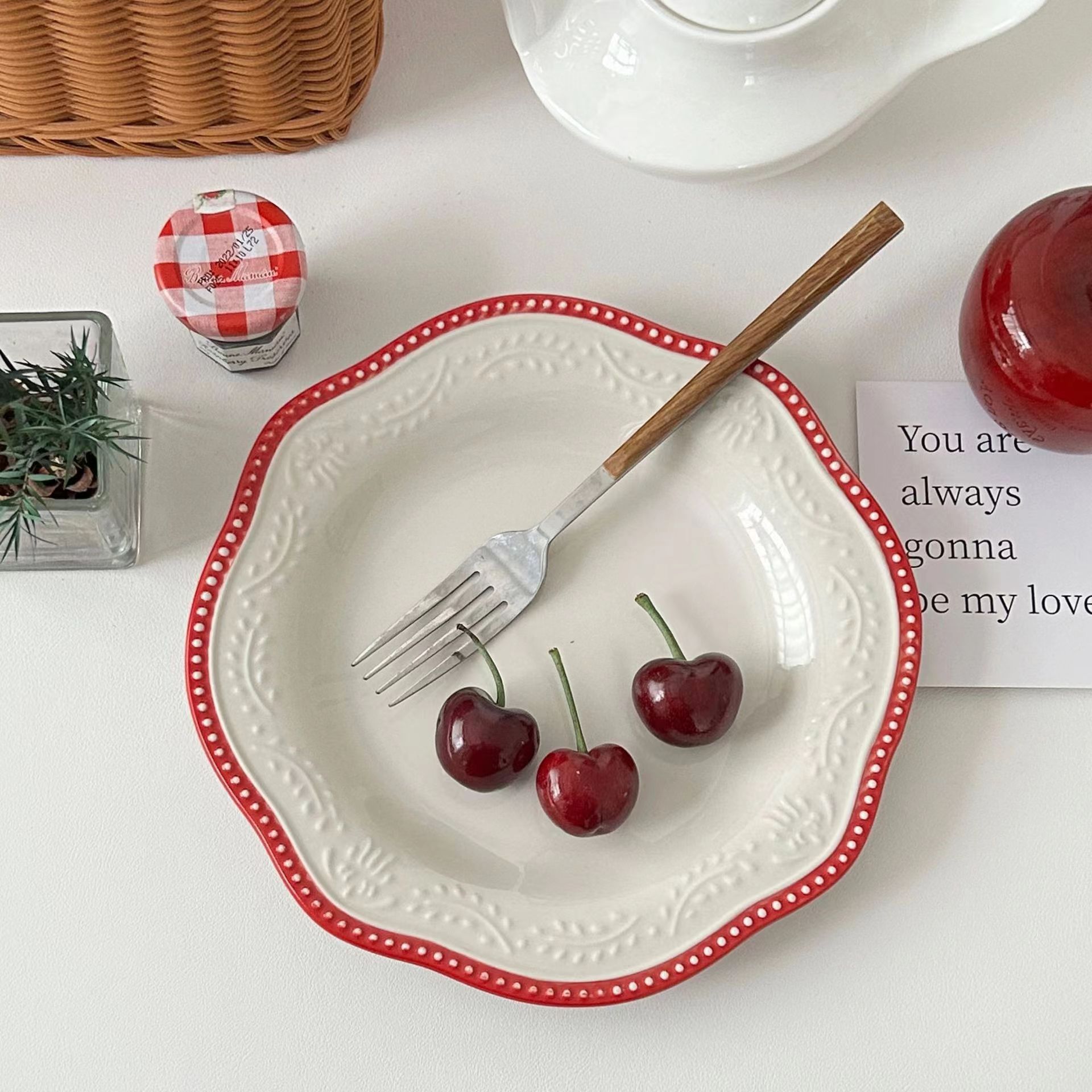 빈티지 양각 레이스 프랑스 디너 플레이트 노르딕 스타일 세라믹 디너 플레이트 서양 디너 플레이트 디저트 플레이트 가정용 조식 플레이트 도매