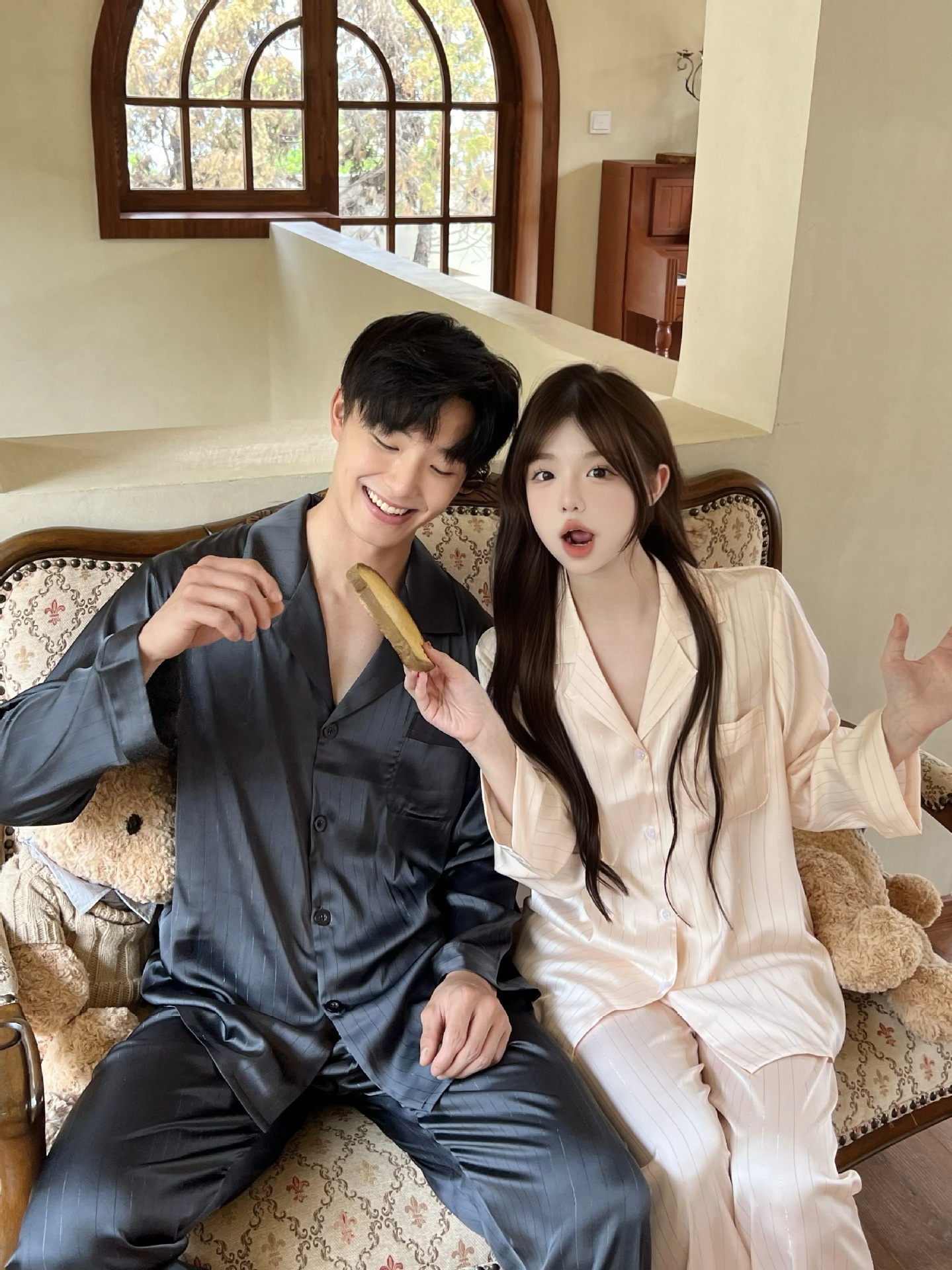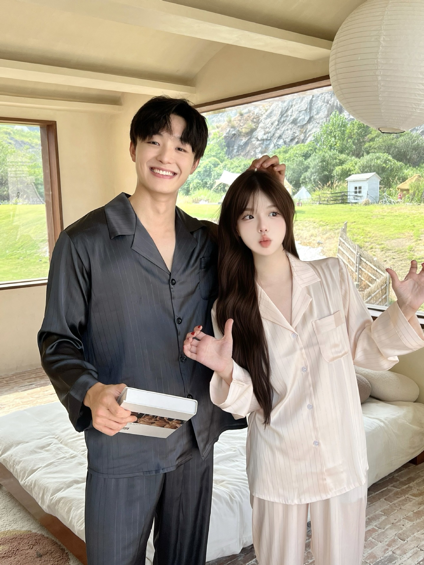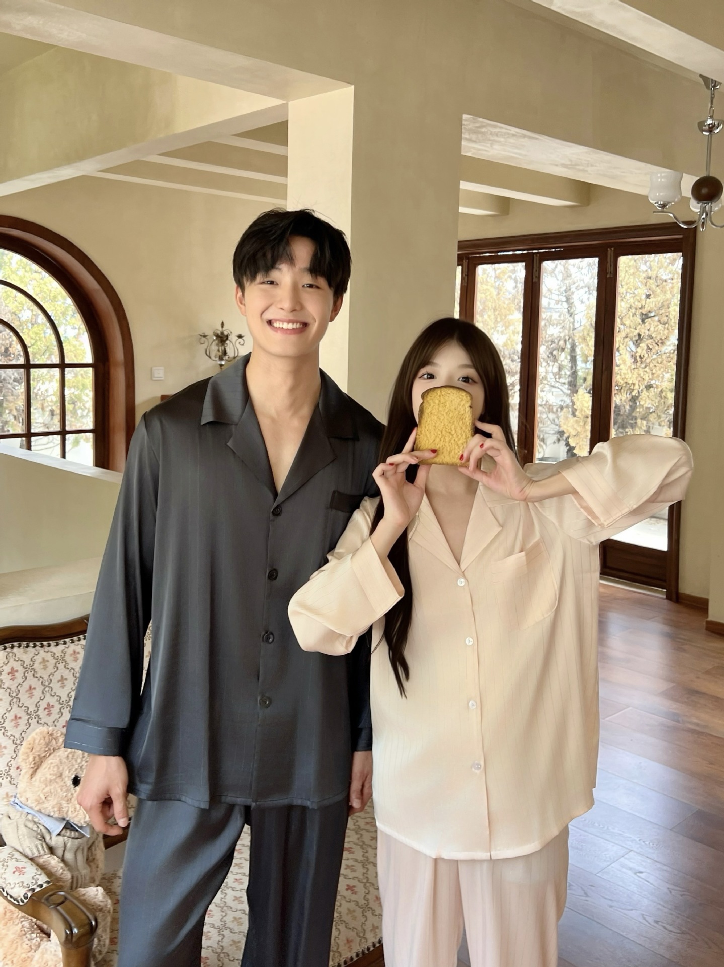 커플 핫 실버 심플 라이트 럭셔리 스타일 잠옷 이른 봄 얼음 실크 실크 긴팔 따뜻하고 편안한 남성과 여성을위한 홈웨어스토어 가기