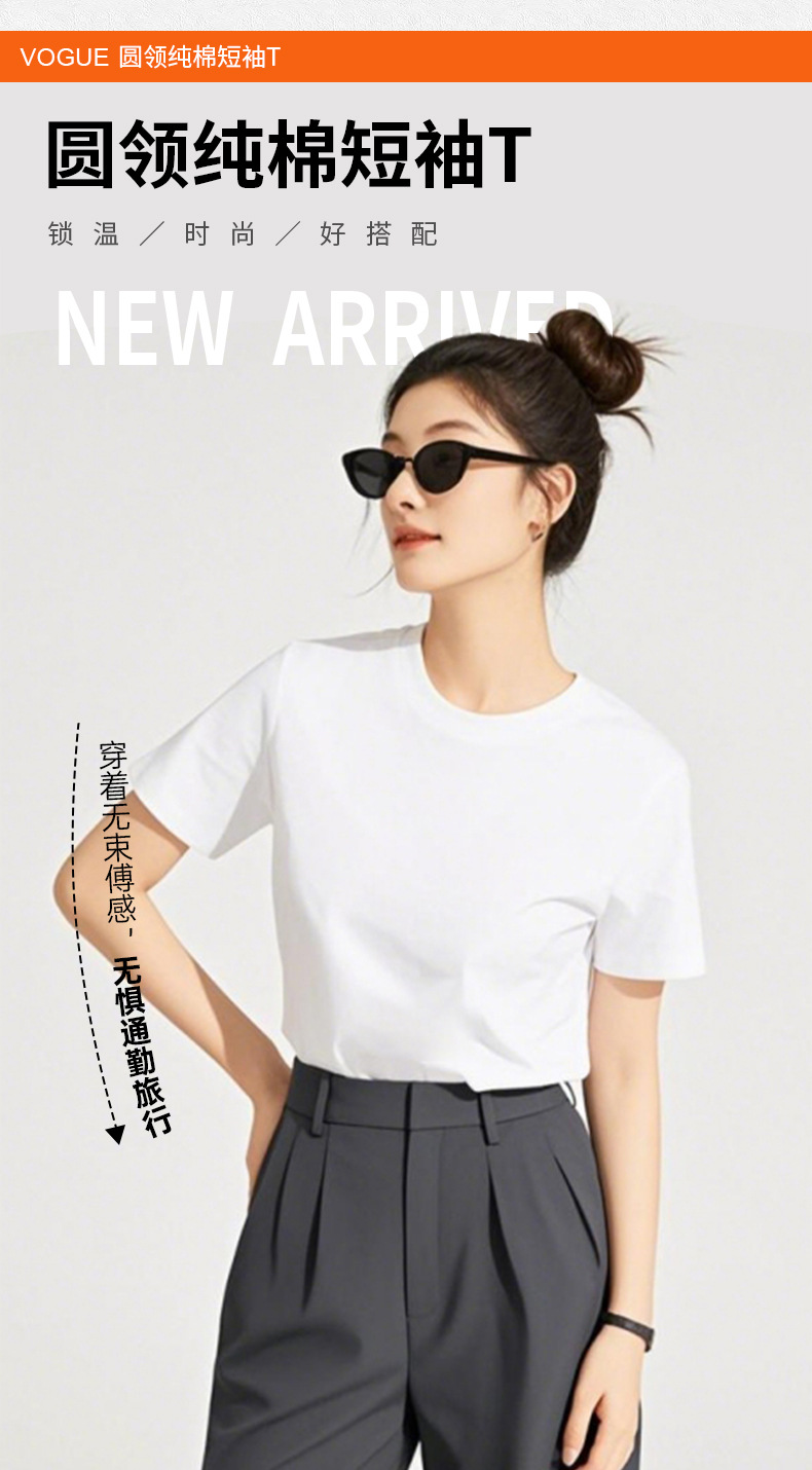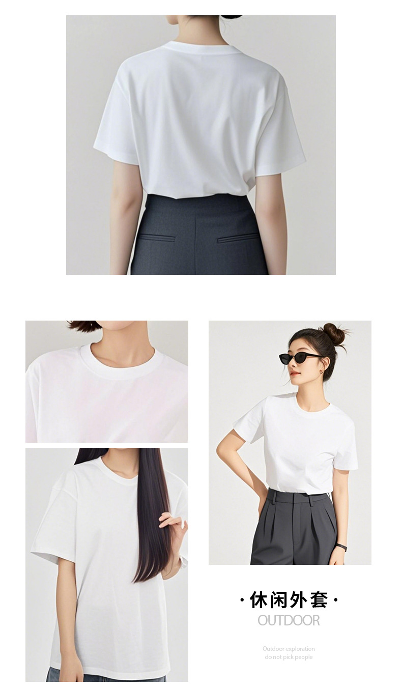 0063 봄 여름 100% 면 원단 라운드넥 순면 반팔 티셔츠 여성 루즈핏 상의 패셔너블한 이너웨어 일본 및 한국 캐주얼스토어 가기