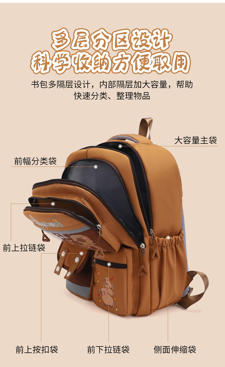 Kapibala 초등학생을위한 새로운 어린이 학교 가방 5 학년 및 6 학년 캐주얼 귀여운 배낭 소년과 소녀를위한 대용량