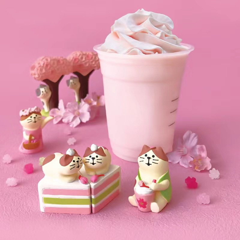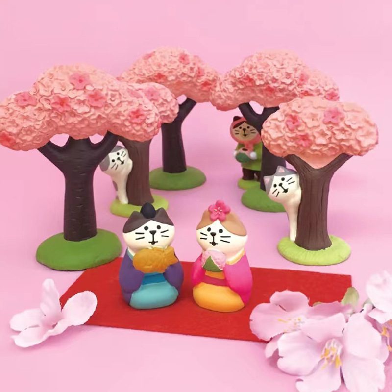 일본 고양이 잡화 Zakka 꽃 감상 여행 고양이 INS 사진 소품 미니어처 선물 고양이 수지 공예 작은 장식품