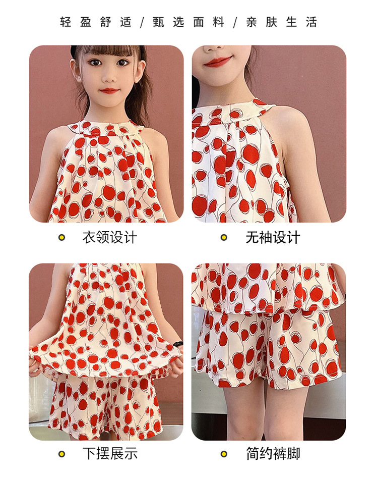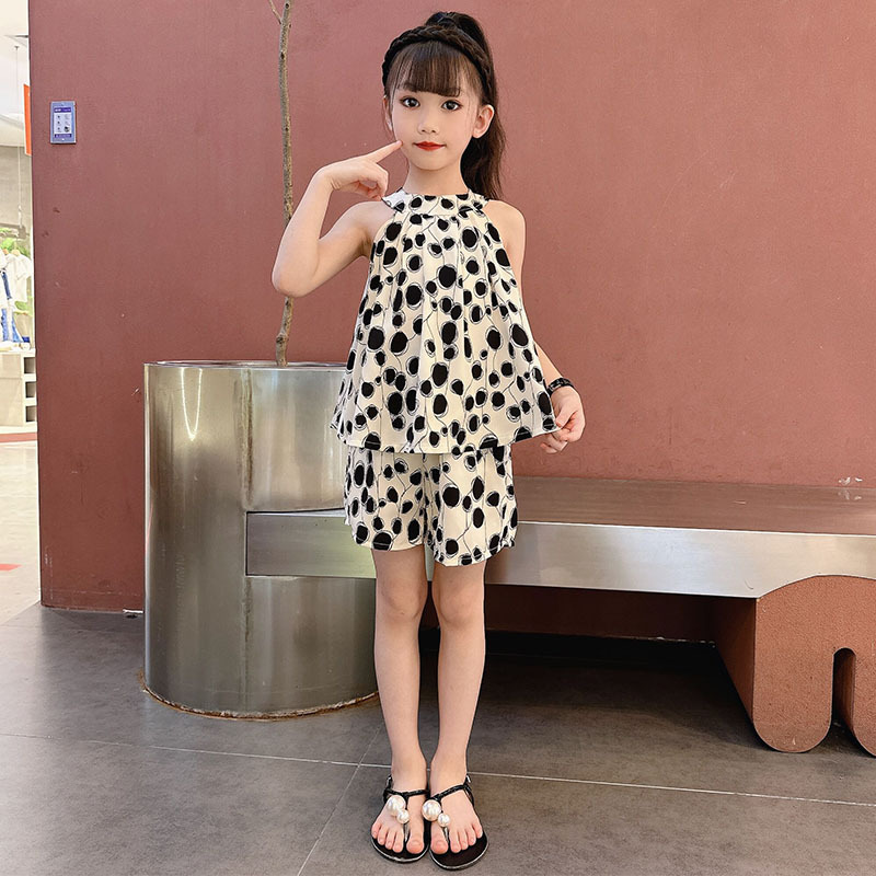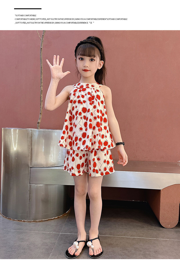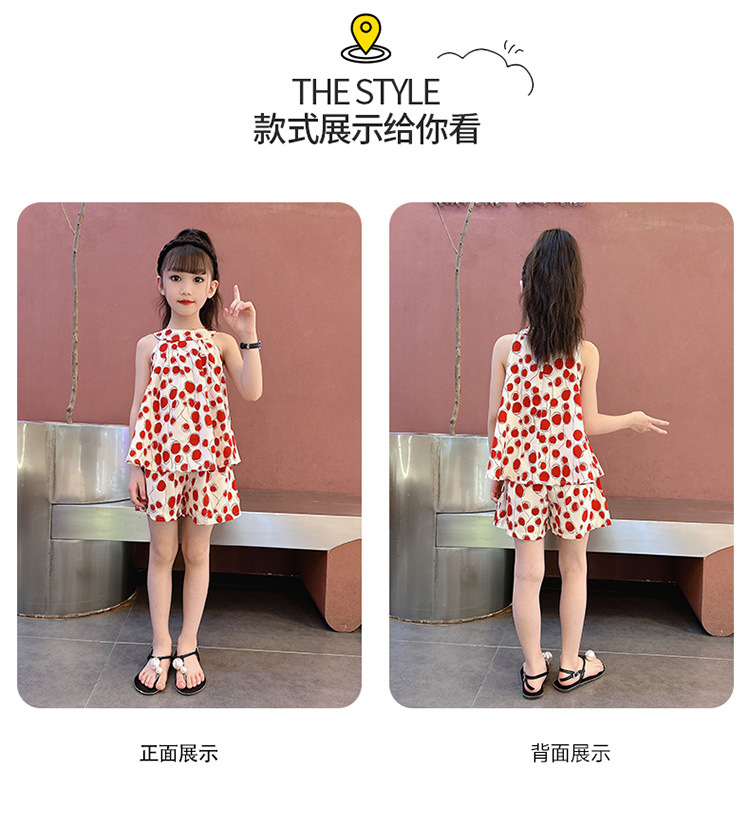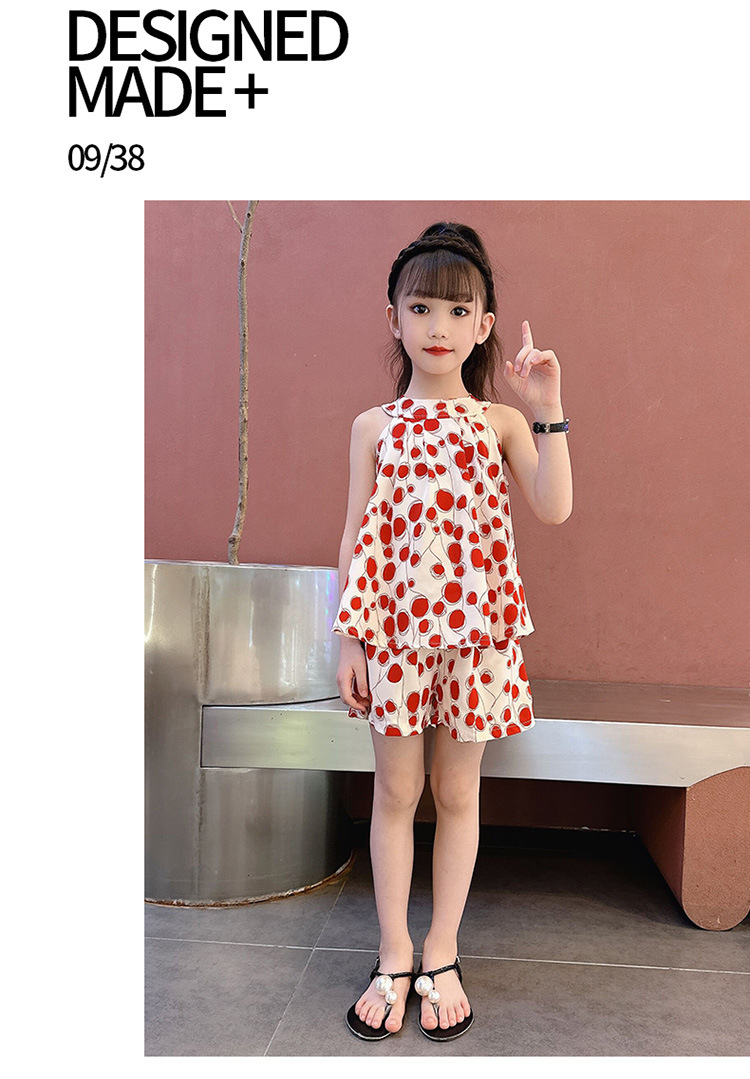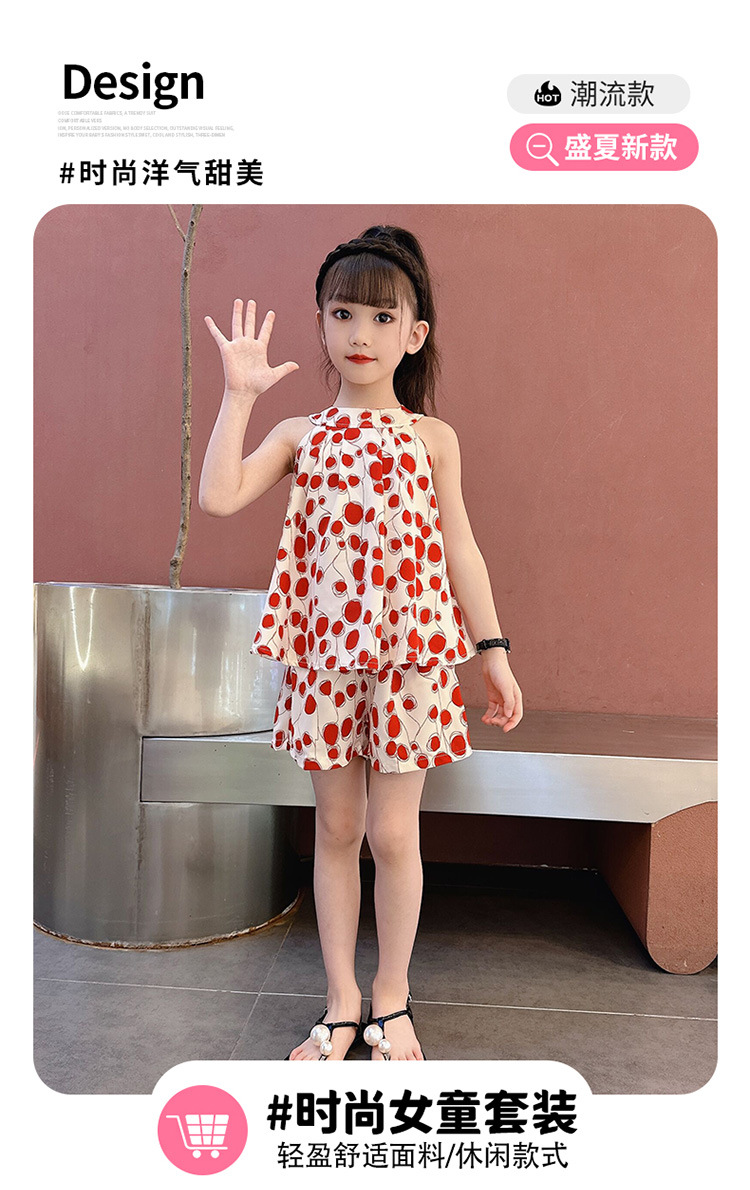 여자 여름 새 스타일 서스펜더 양복, 아동 반바지, 서양식 옷, 어린 소녀 쉬폰 민소매 투피스 여름 양복스토어 가기