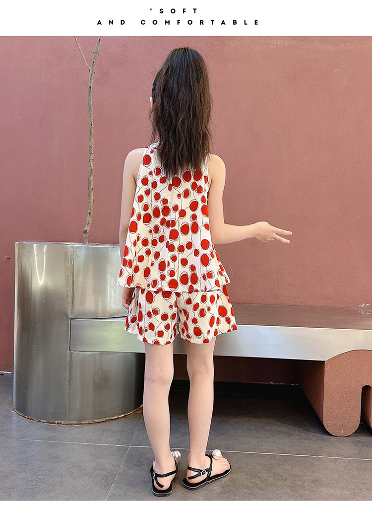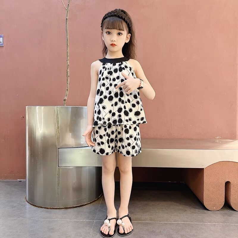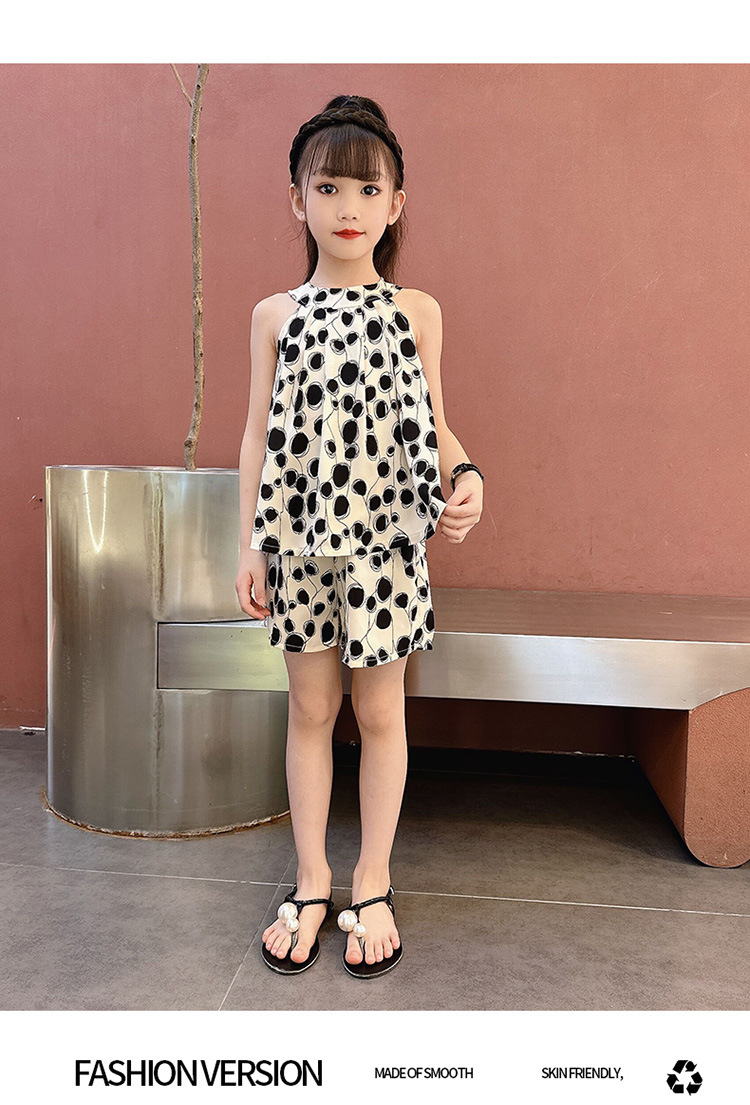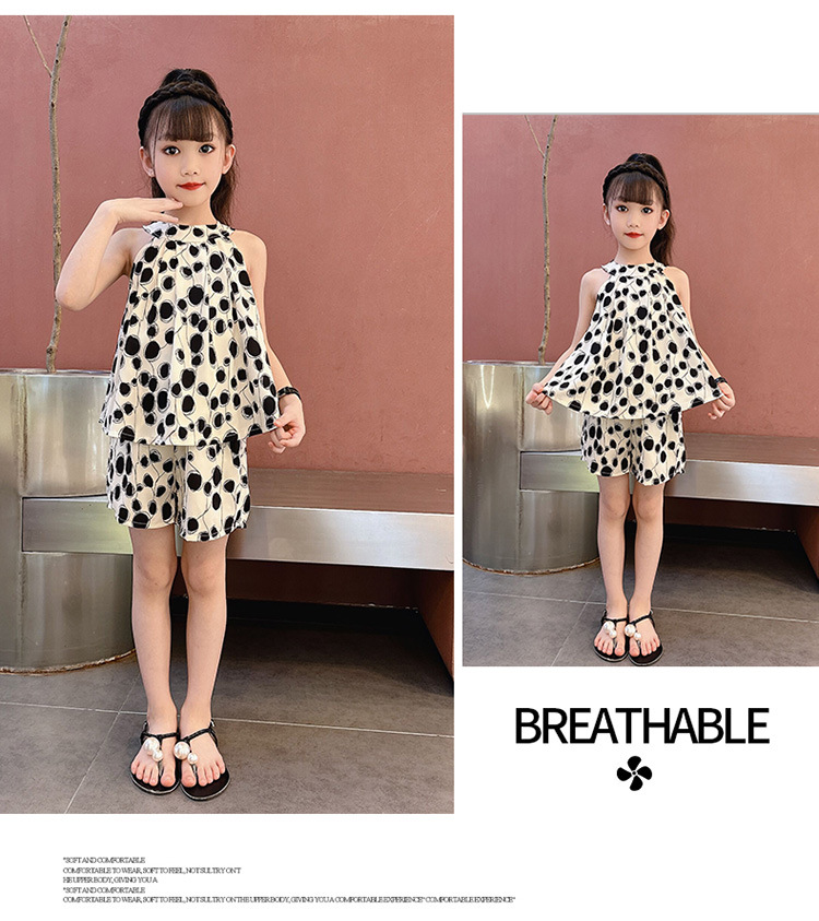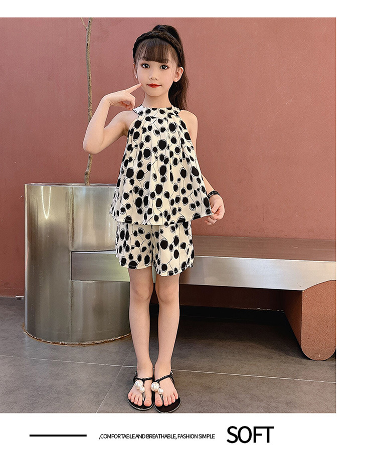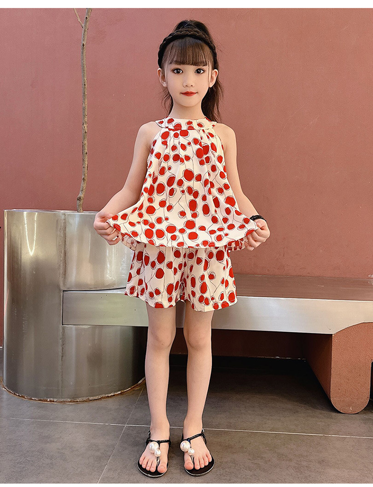 여자 여름 새 스타일 서스펜더 양복, 아동 반바지, 서양식 옷, 어린 소녀 쉬폰 민소매 투피스 여름 양복스토어 가기