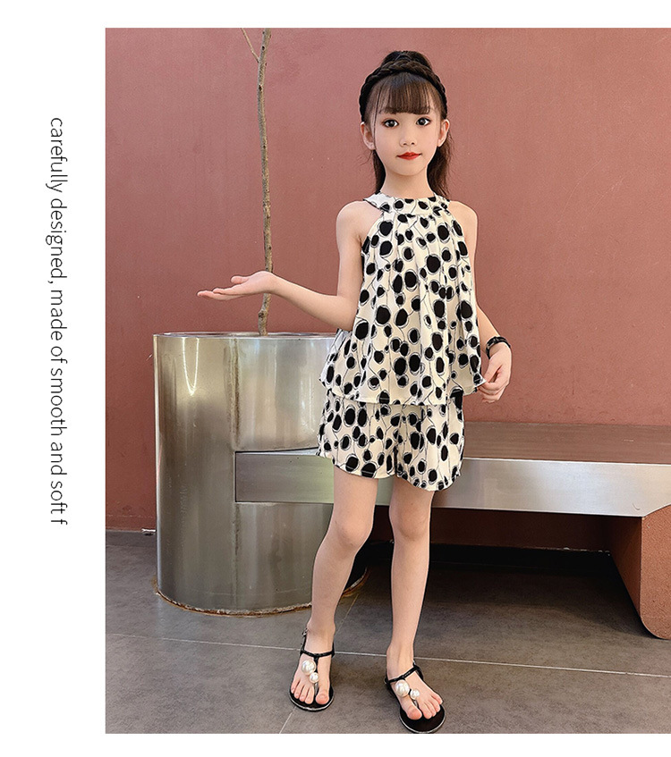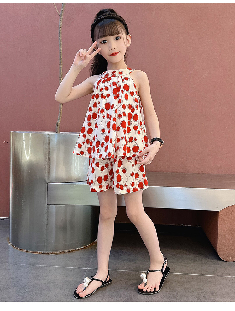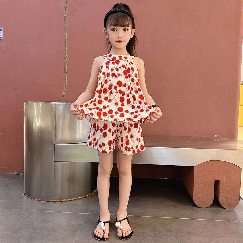 여자 여름 새 스타일 서스펜더 양복, 아동 반바지, 서양식 옷, 어린 소녀 쉬폰 민소매 투피스 여름 양복