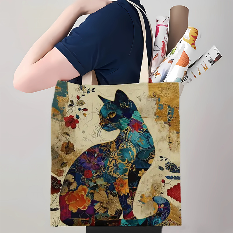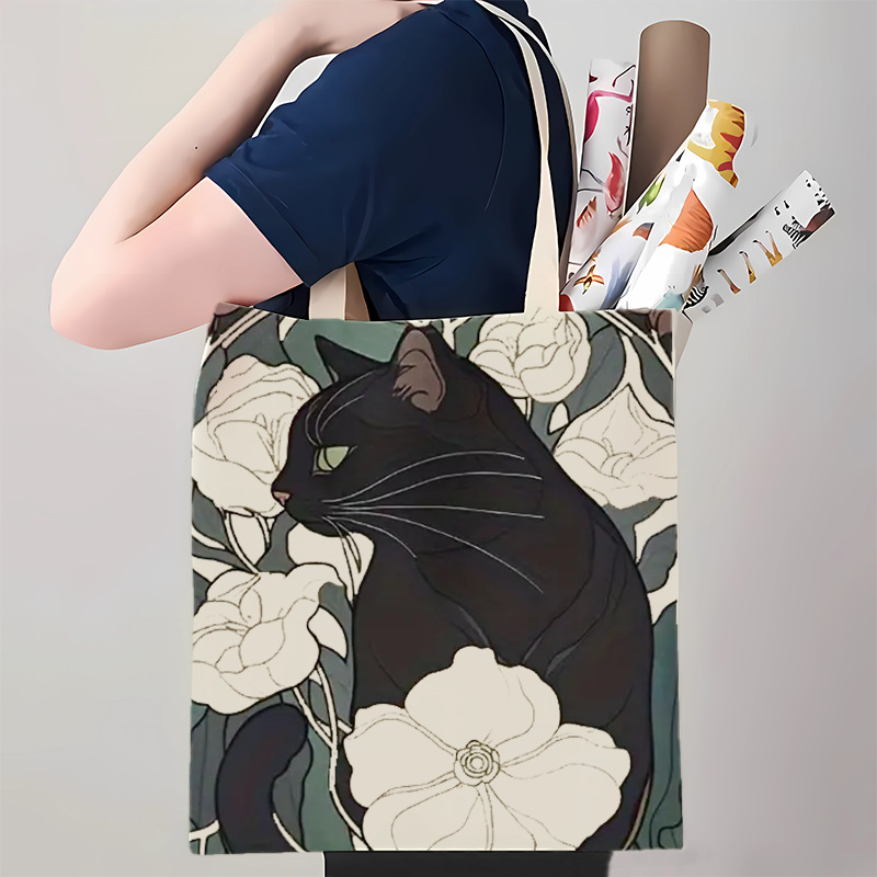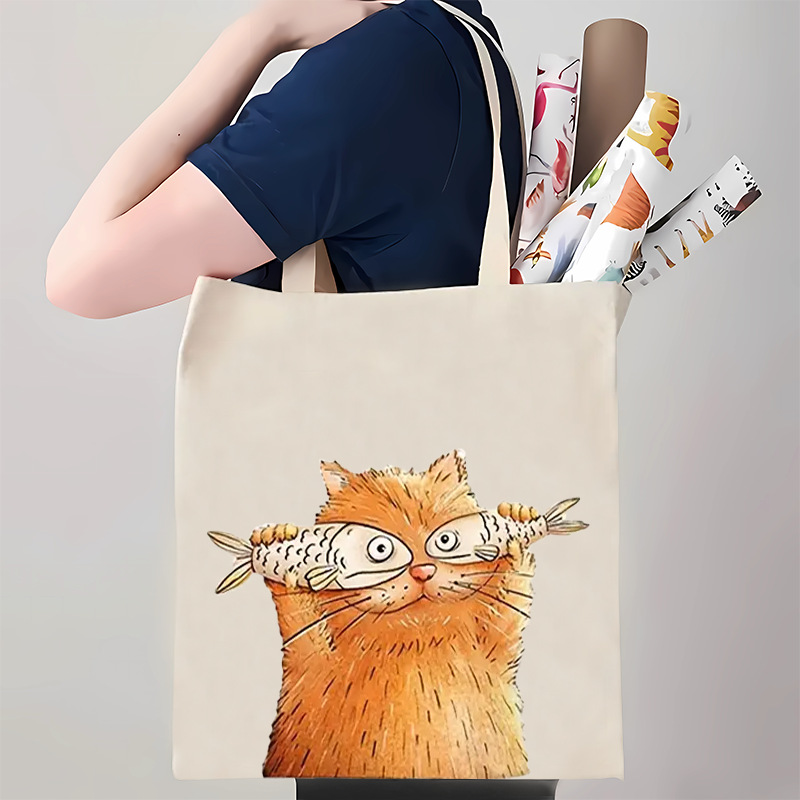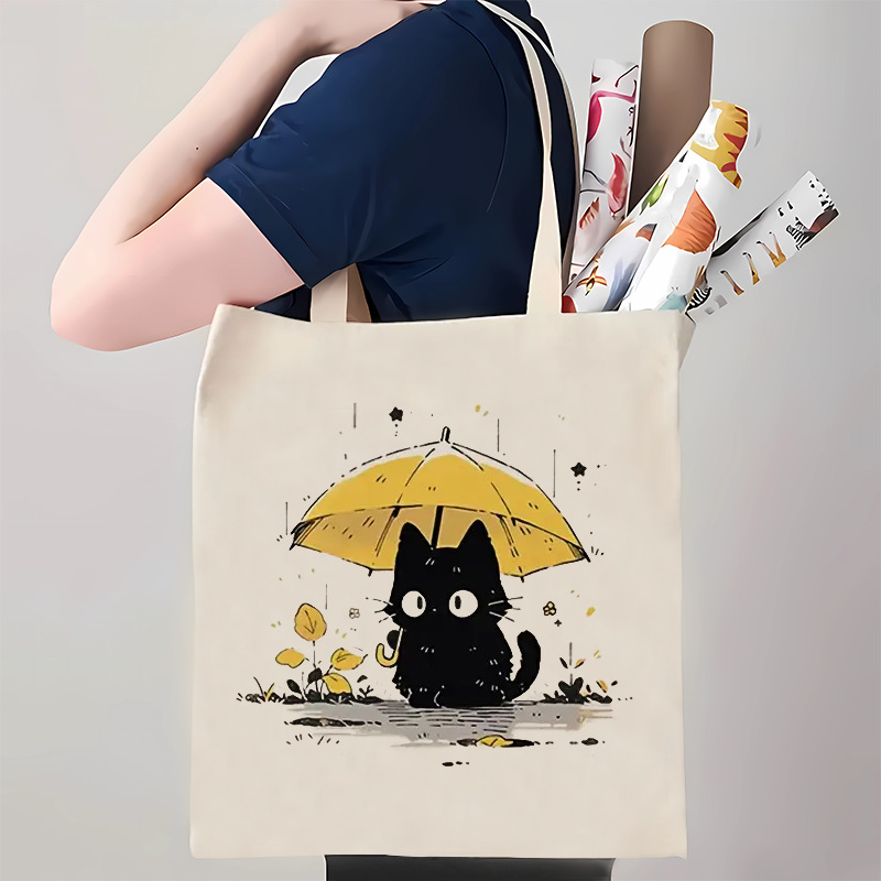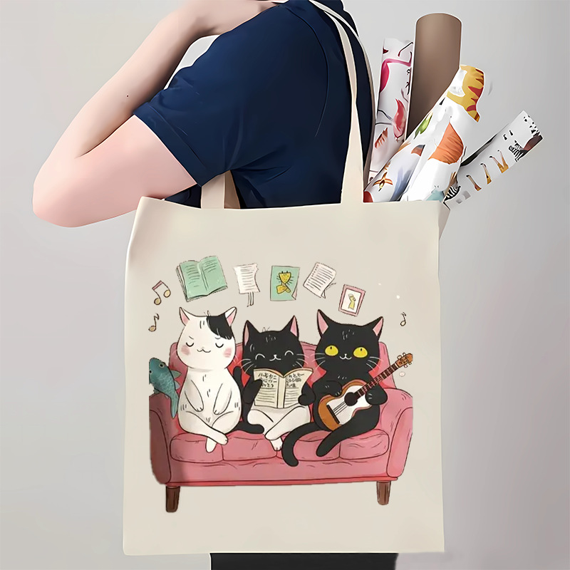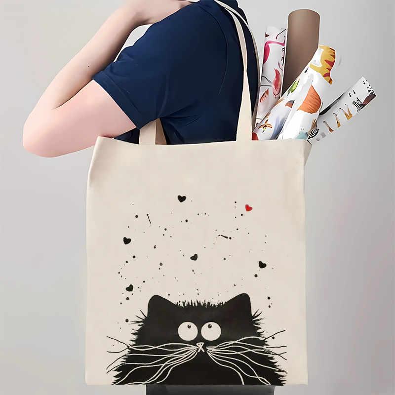 국경을 넘는 인기 귀여운 고양이 프린트 캔버스 가방, 숄더 접이식 핸드백, 쇼핑백, 여행 가방, 맞춤 제작 가능