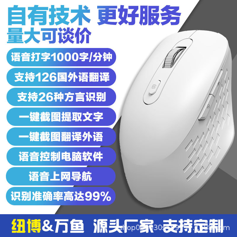 Wanyu AI 스마트 마우스 음성 입력 번역 무선 블루투스 충전 휴대용 음소거 음성 제어 사무실 범용스토어 가기