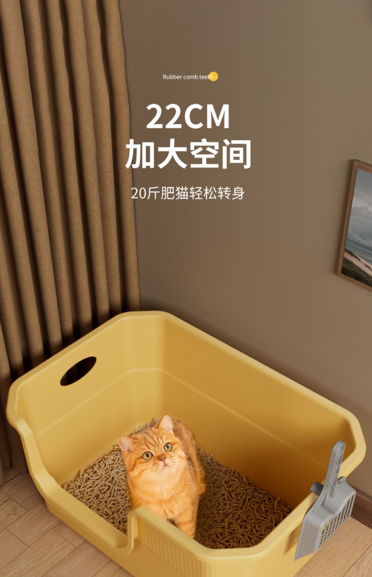 • 50CM 노란색 고양이 배변 상자(고양이 배변 국자 포함)