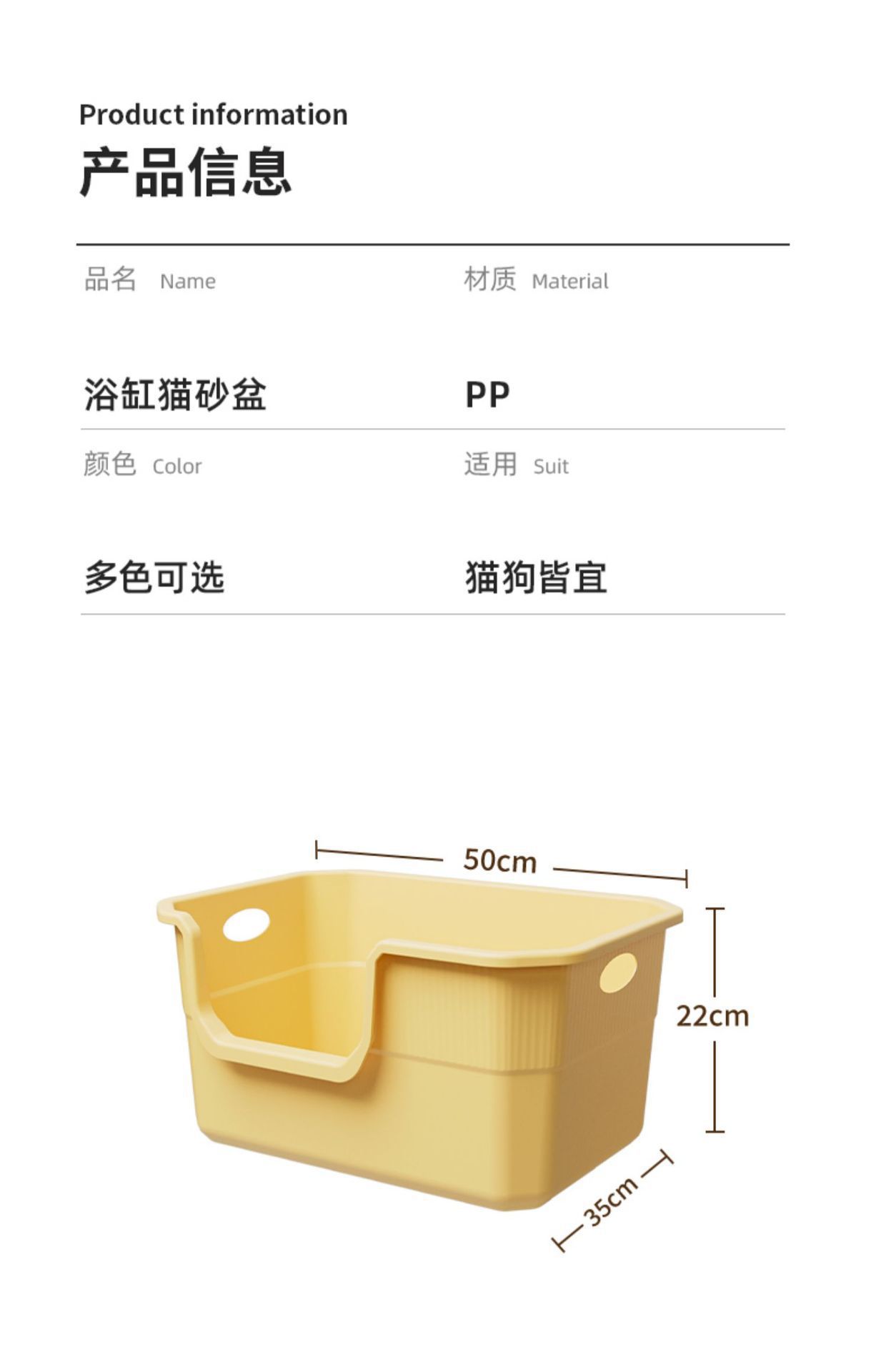 • 50CM 노란색 대형 고양이 배변 상자(고양이 배변 국자가 함께 제공됨)