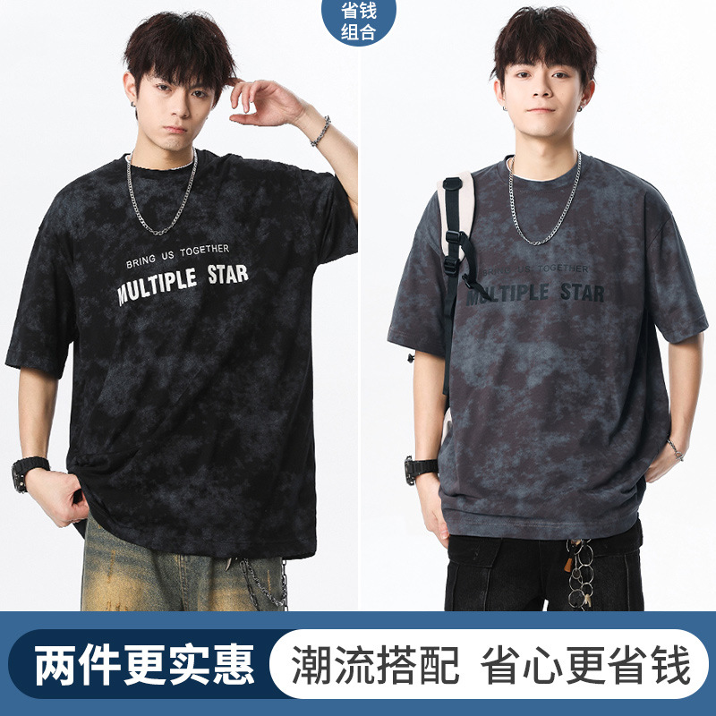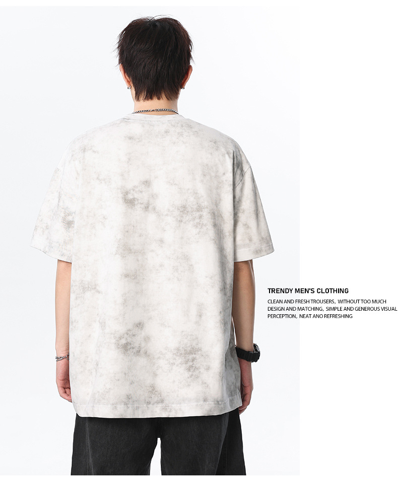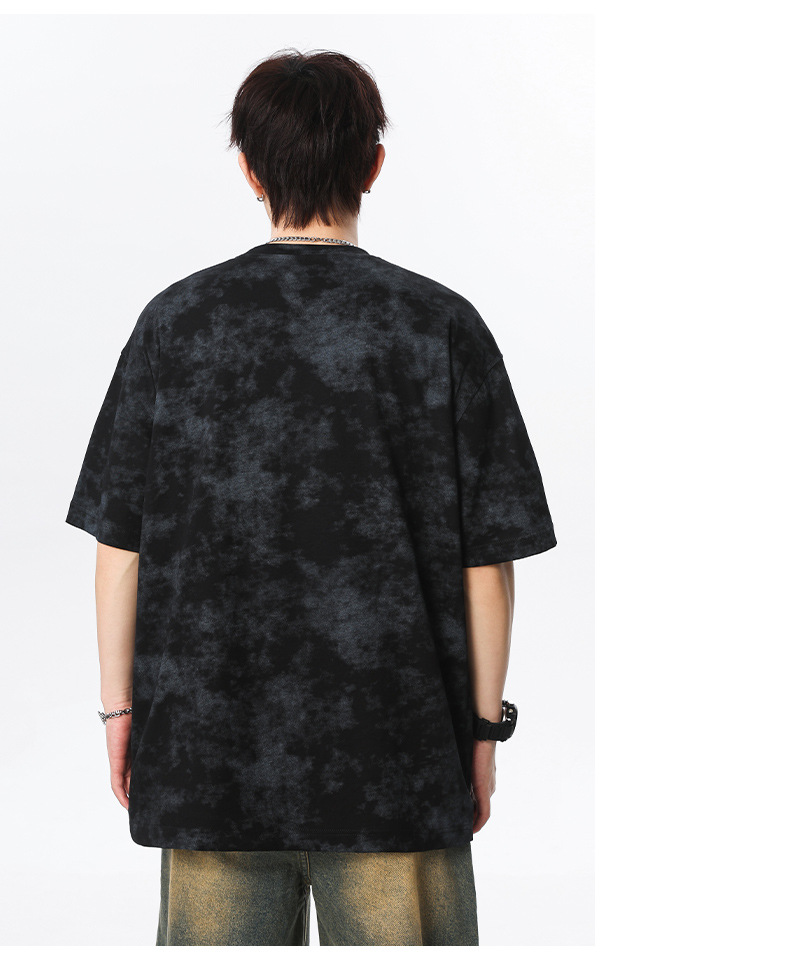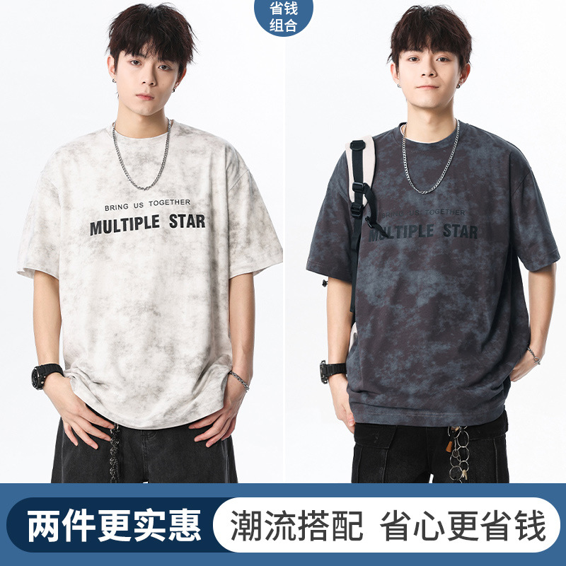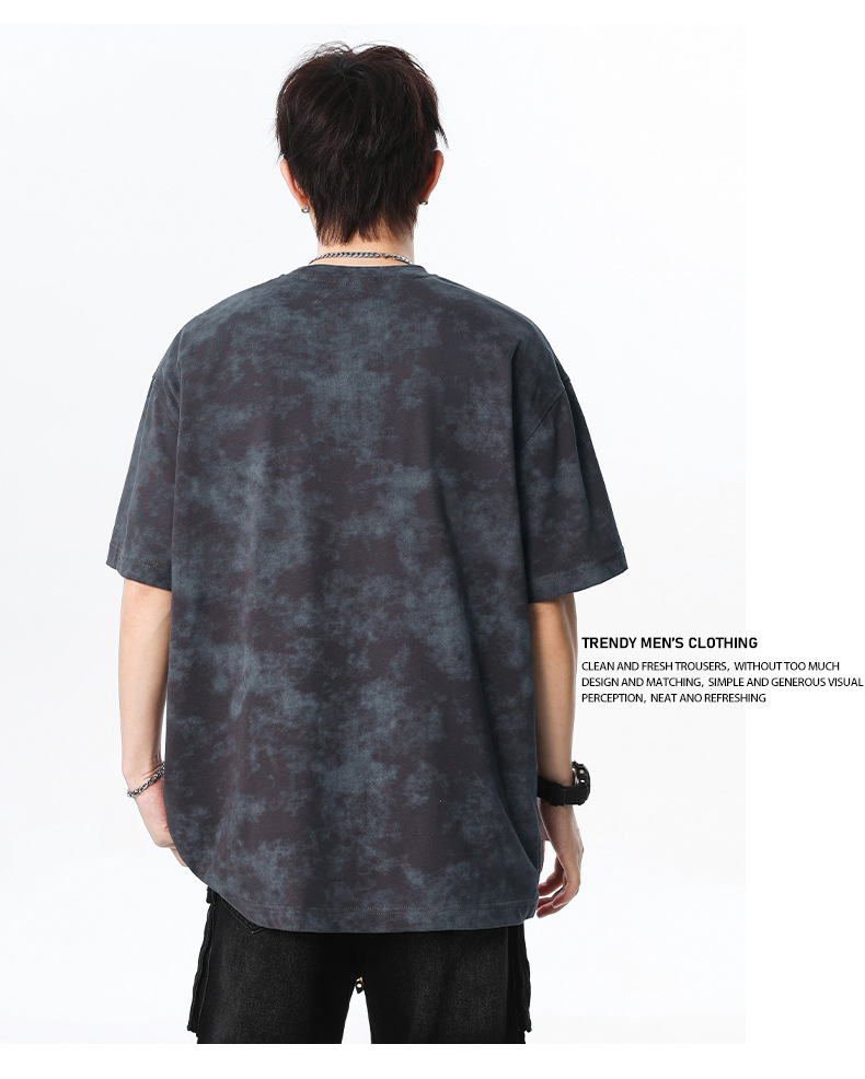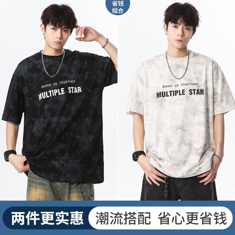 미국 타이-염료 짧은 소매 남자의 여름 2025 새로운 디자인 센스 틈새 순수 코튼 캐주얼 베이스 셔츠 얇은 남성 티셔츠스토어 가기