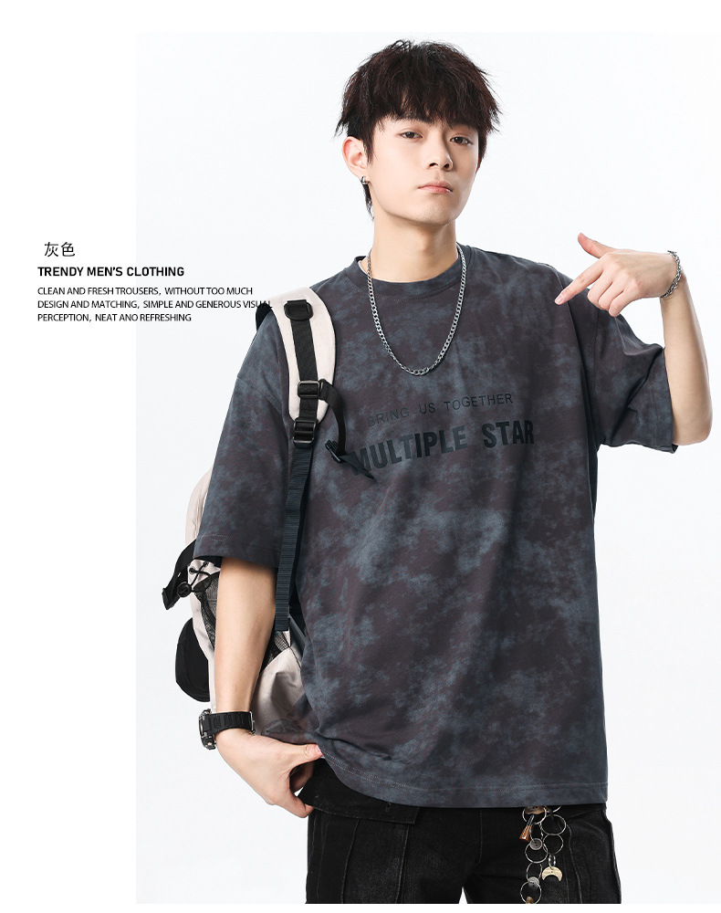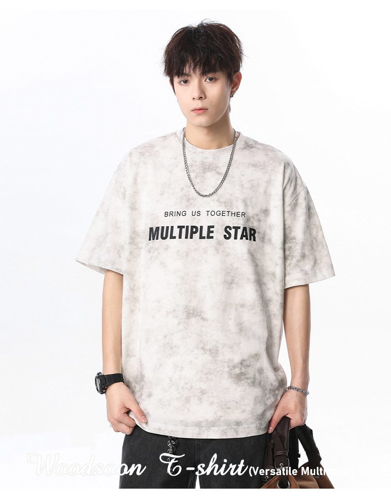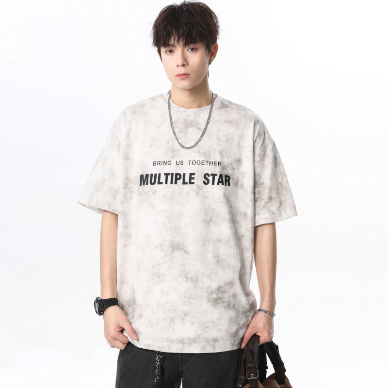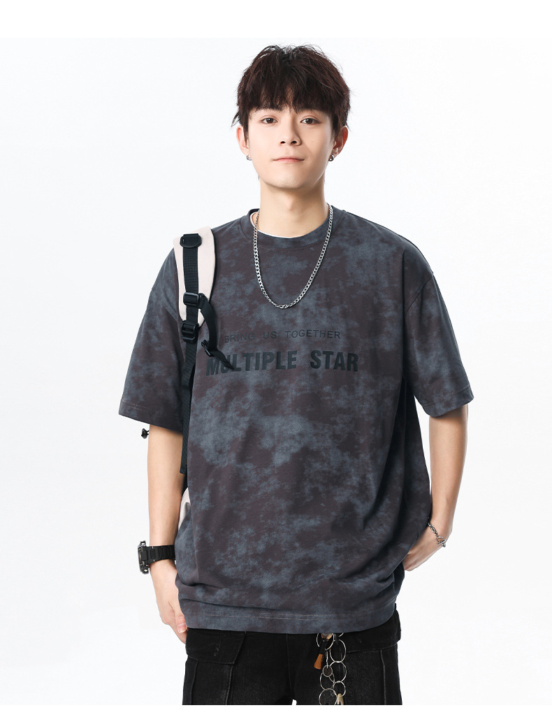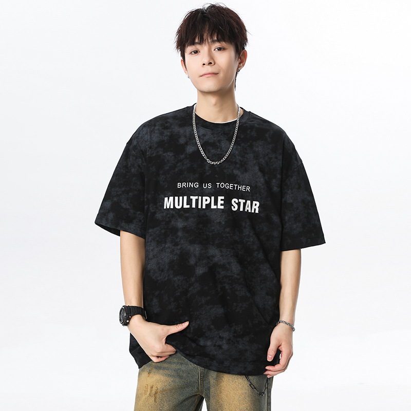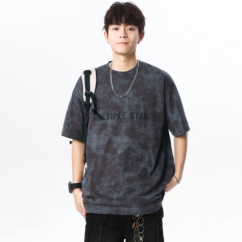 미국 타이-염료 짧은 소매 남자의 여름 2025 새로운 디자인 센스 틈새 순수 코튼 캐주얼 베이스 셔츠 얇은 남성 티셔츠스토어 가기