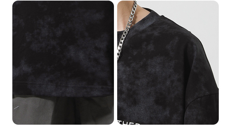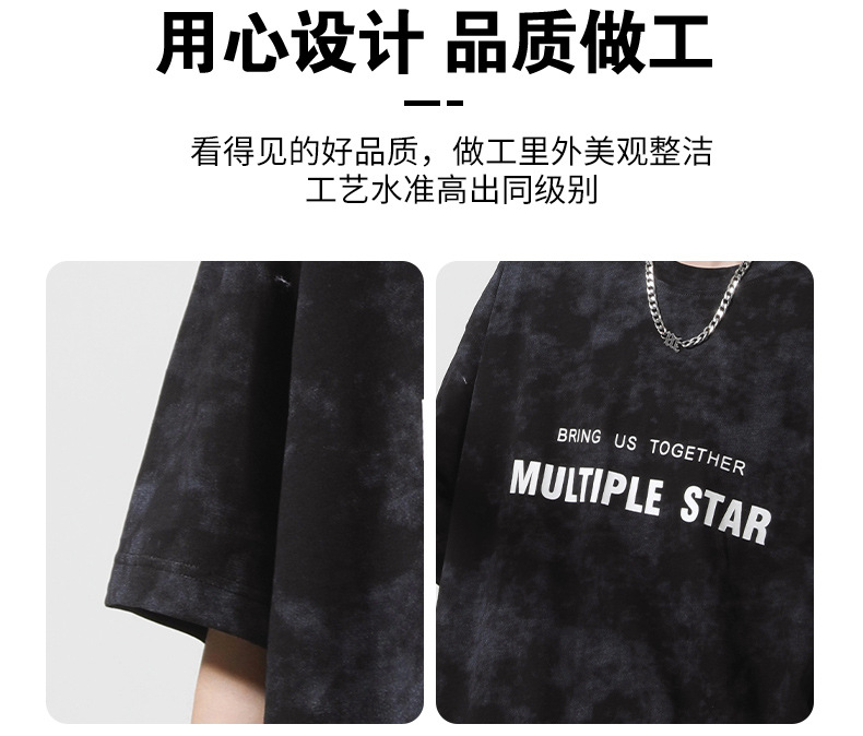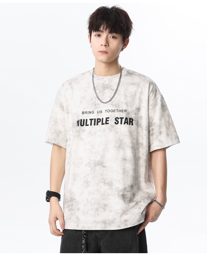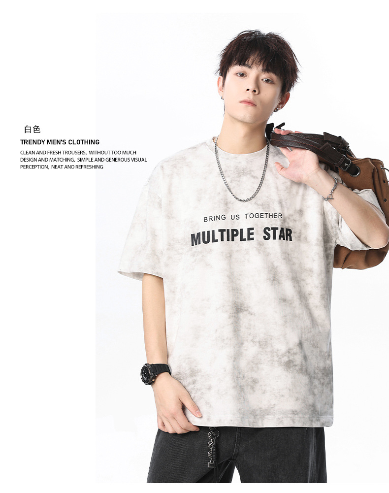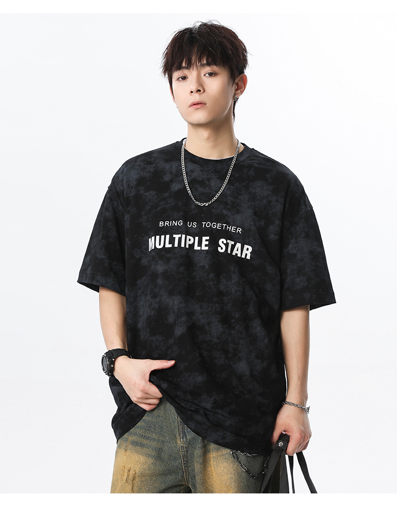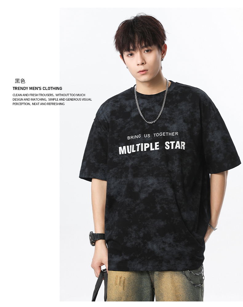 미국 타이-염료 짧은 소매 남자의 여름 2025 새로운 디자인 센스 틈새 순수 코튼 캐주얼 베이스 셔츠 얇은 남성 티셔츠스토어 가기