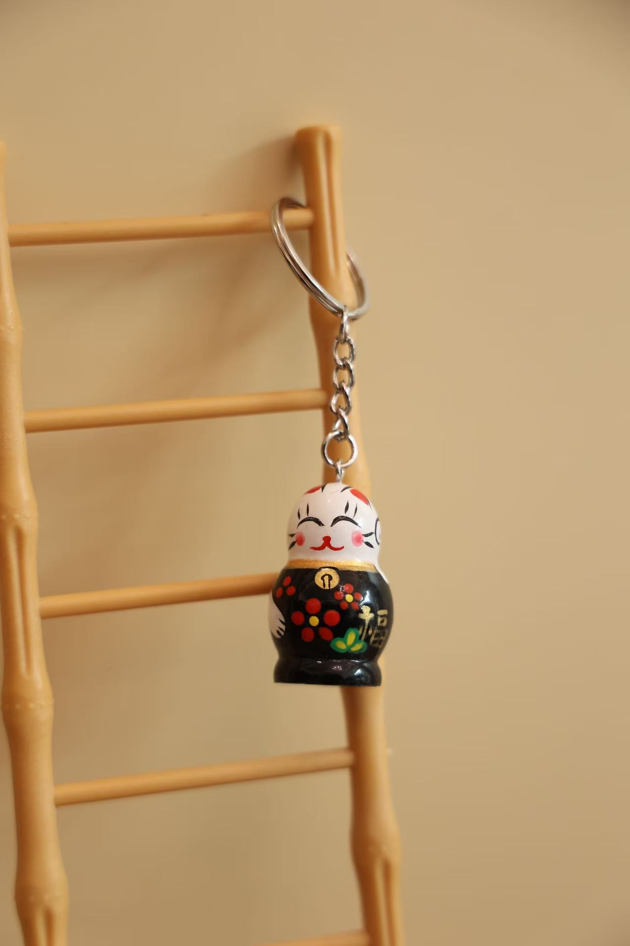 • 나무 행운의 고양이 열쇠고리 (블랙)