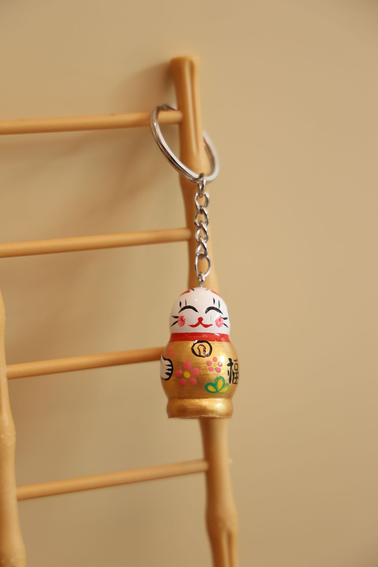 • 나무 행운의 고양이 열쇠고리 (골드)