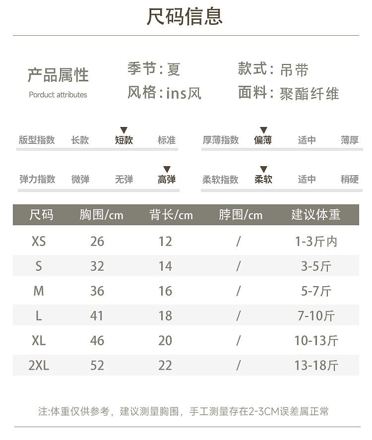 • XS사이즈 가슴둘레 26 뒷면 12(내부 1.5kg 이내)