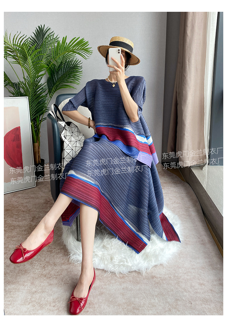 Miyake Loose 플러스 사이즈 패션 세트 여성의 봄과 여름 대비 최고 배꼽 커버 A 라인 스커트 주름 2 피스 세트스토어 가기