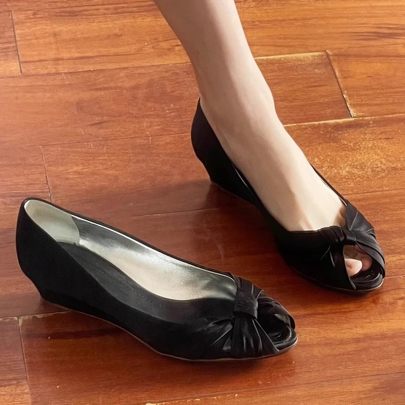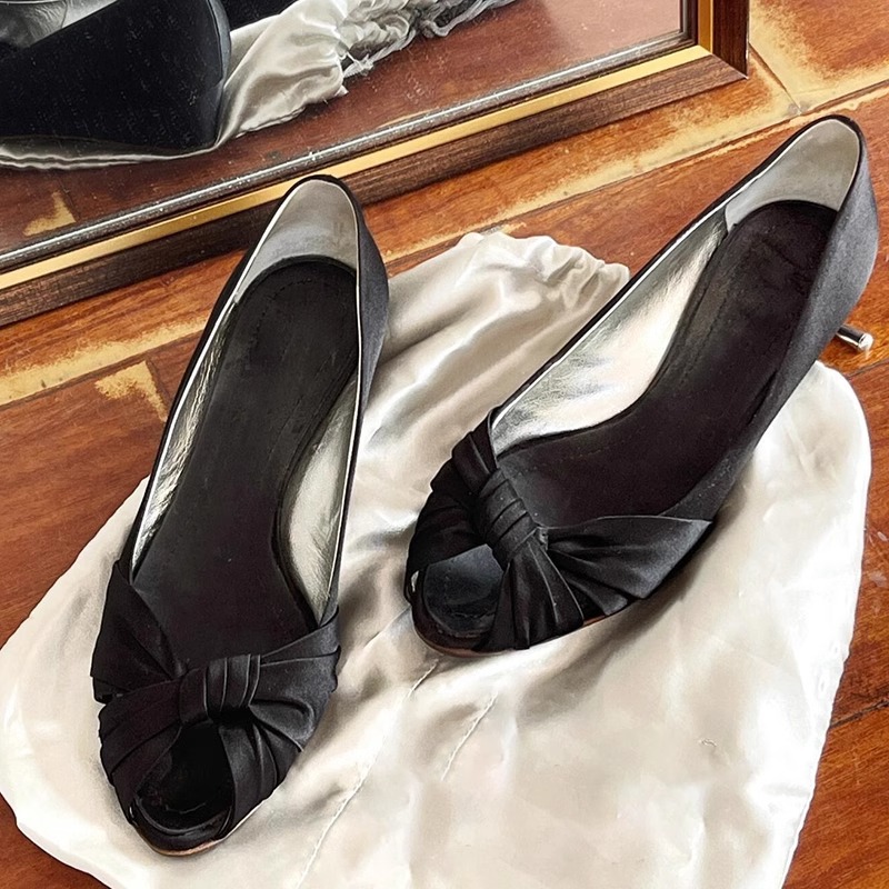 실크 새틴!! 레트로 피쉬 마우스 웨지힐 하이힐 여성스러운 빈티지 중고 메리제인 슈즈(세금 미포함)스토어 가기