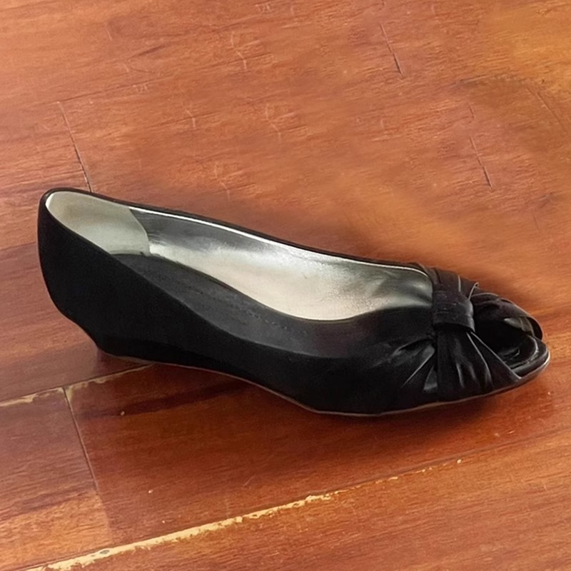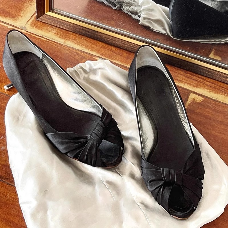 실크 새틴!! 레트로 피쉬 마우스 웨지힐 하이힐 여성스러운 빈티지 중고 메리제인 슈즈(세금 미포함)