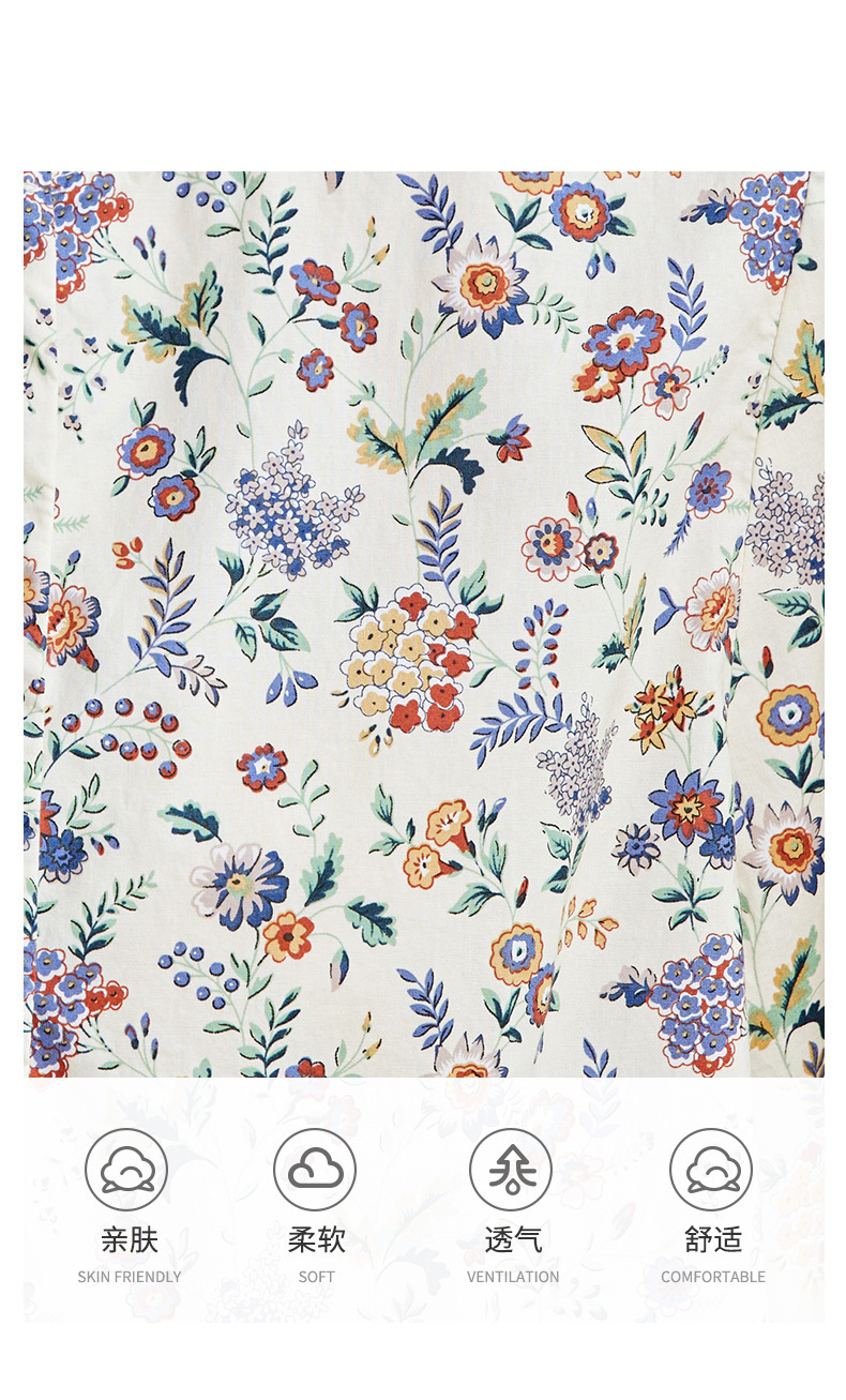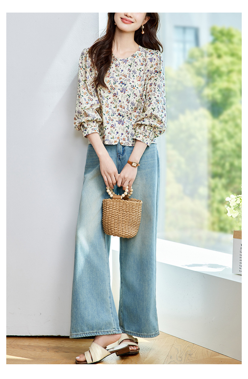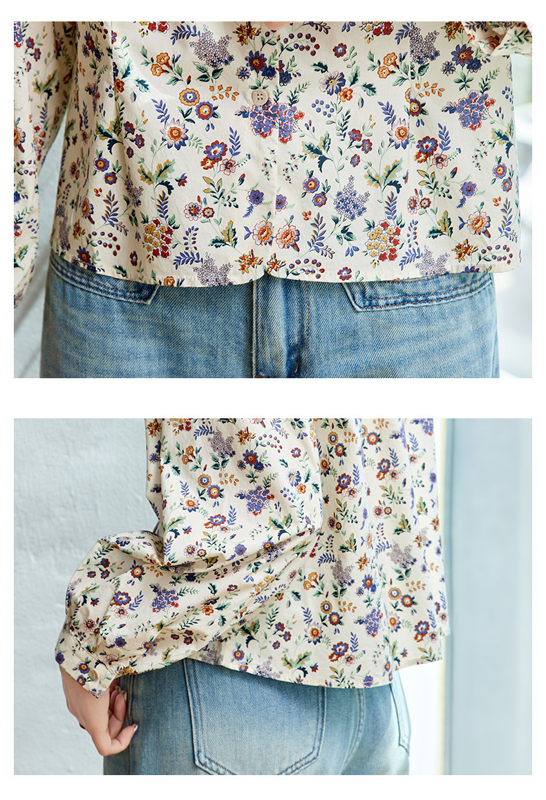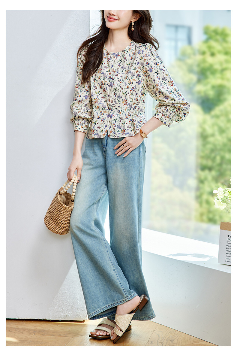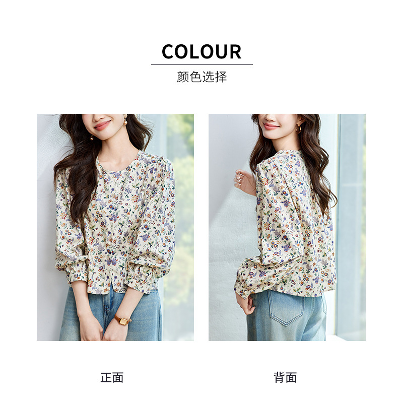 꽃 셔츠 여성용 긴팔 2025 여름 얇은 목가위 느슨한 캐주얼 라운드 넥 셔츠스토어 가기