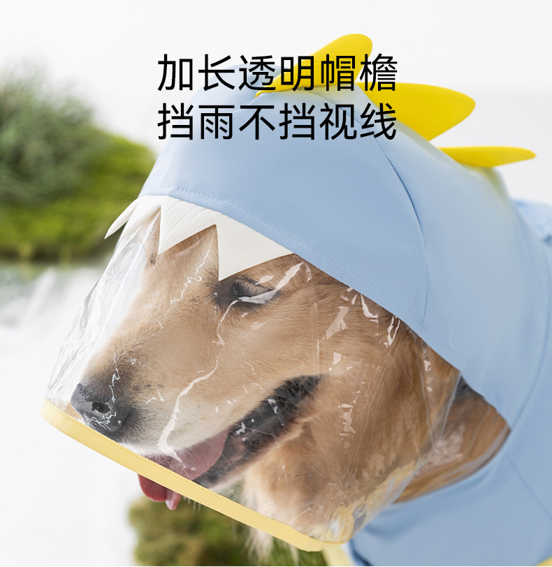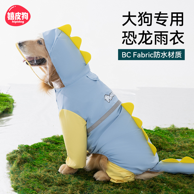개 중형 및 대형 개 골든 리트리버 3 차원 공룡 비옷 큰 개 4 개 다리 풀백 꼬리 애완 동물 개 방수 비옷